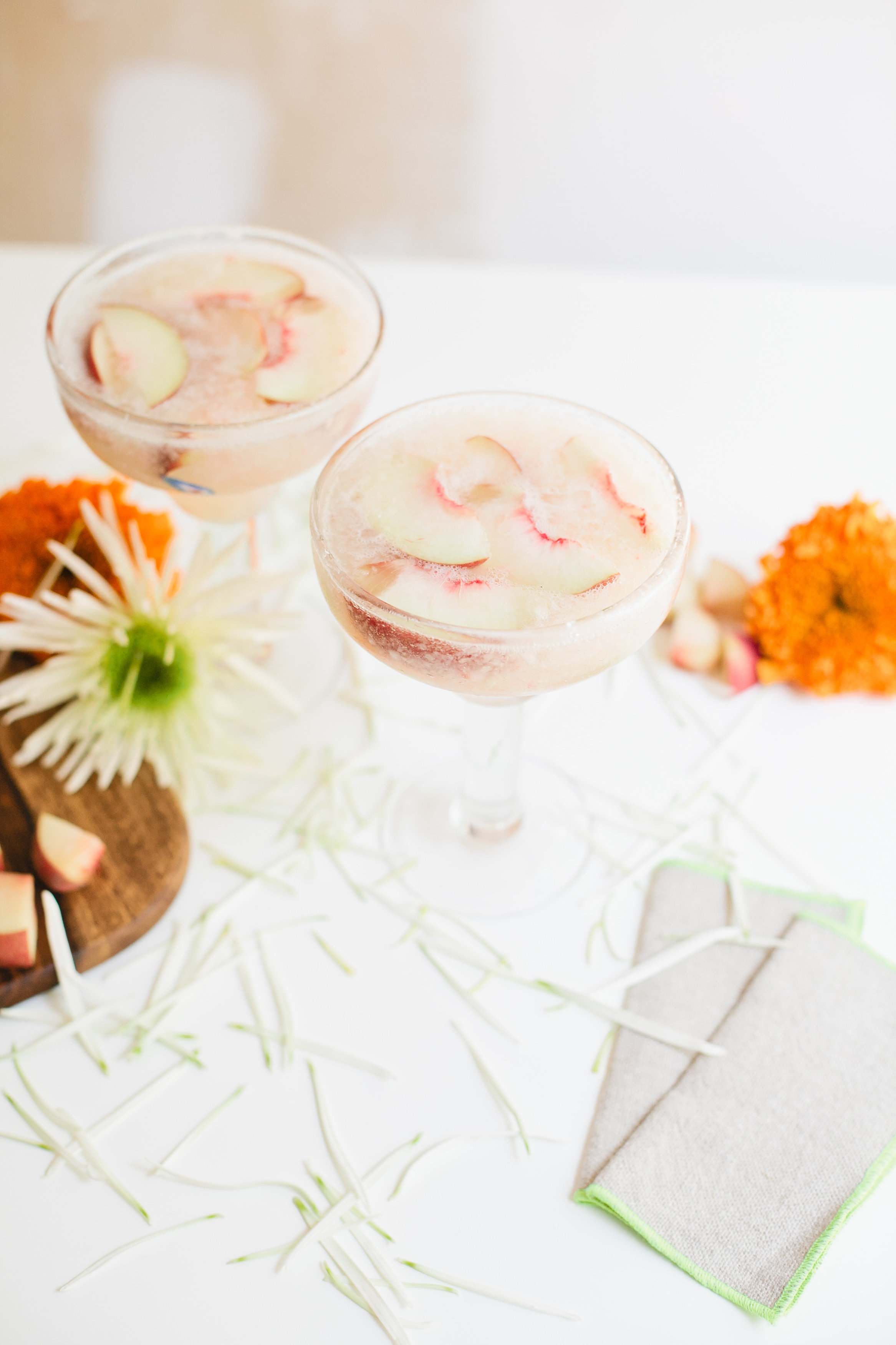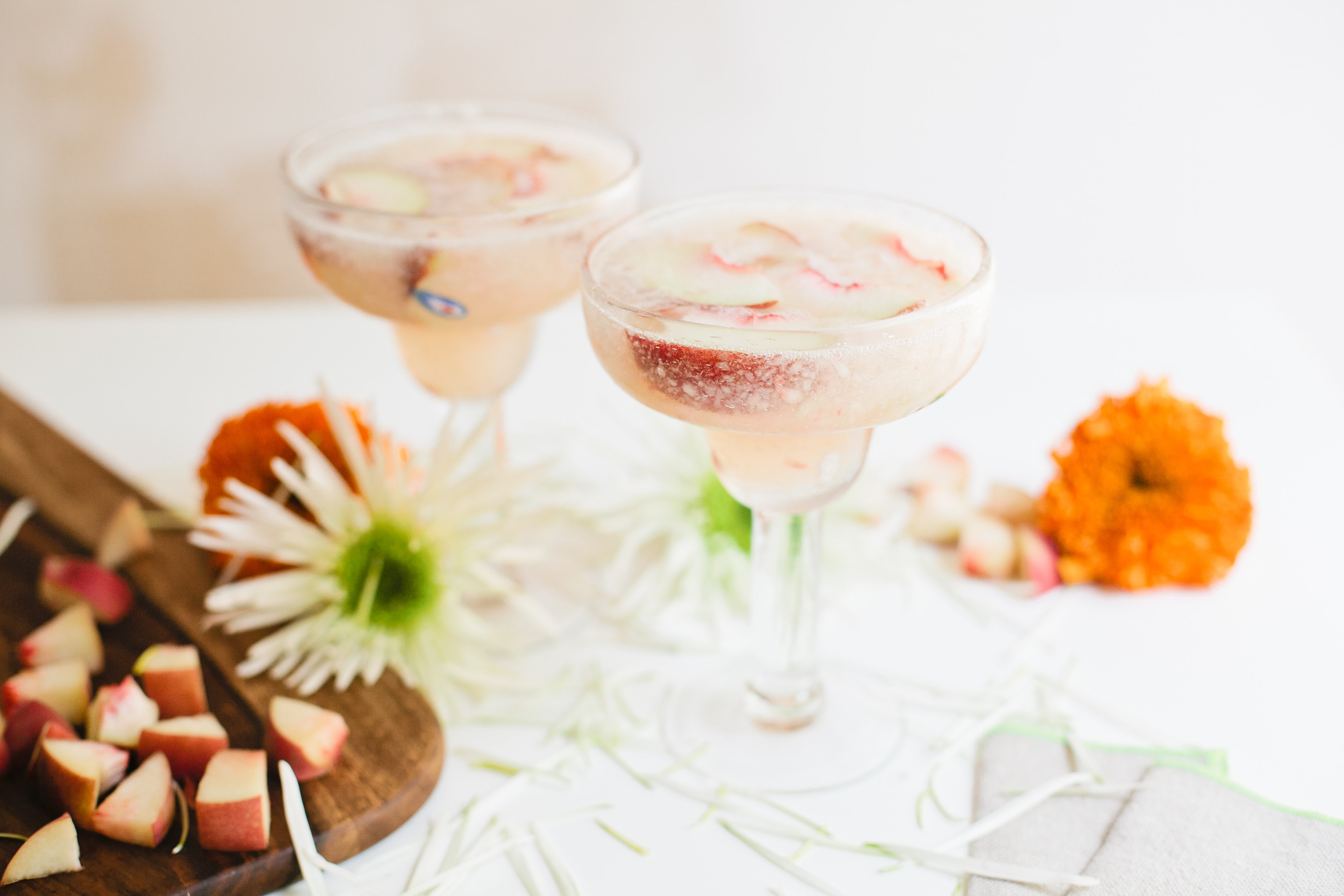 It’s Labor day and somewhat officially the last day of Summer.  Booooooo!!!! But, we have some pretty good Indian Summers down here in So Cal, so we thought we’d share this amazing Peach Margarita with you guys.  Using it today or for the next month is perfectly acceptable; it’s pretty, so yummy and refreshing!!