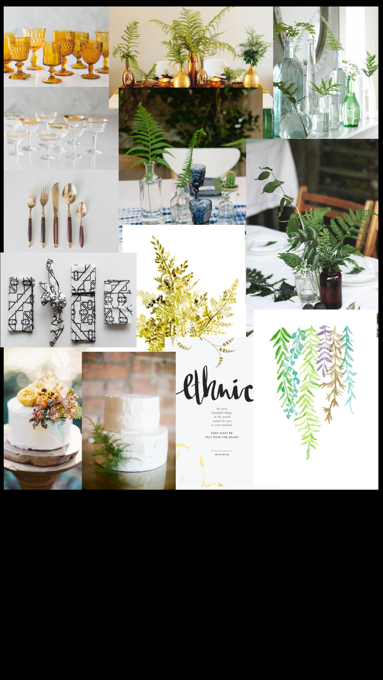 This summer we’ve done some good ones so we wanted to share them with you from start to finish. Here’s the one we did for Jacquelyn’s sister Janna when she planned her sprinkle last month. Janna gave me some hints of details like the fern greenery and integrating her favorite color…yellow when she came to me. We took some inspiration from baby Cruz’s nursery, so we knew Jacquelyn would love it. Here’s a peek at the vision board I made. I went natural, organic, simple, and used greens and blacks for this precious boy we are all waiting for.
