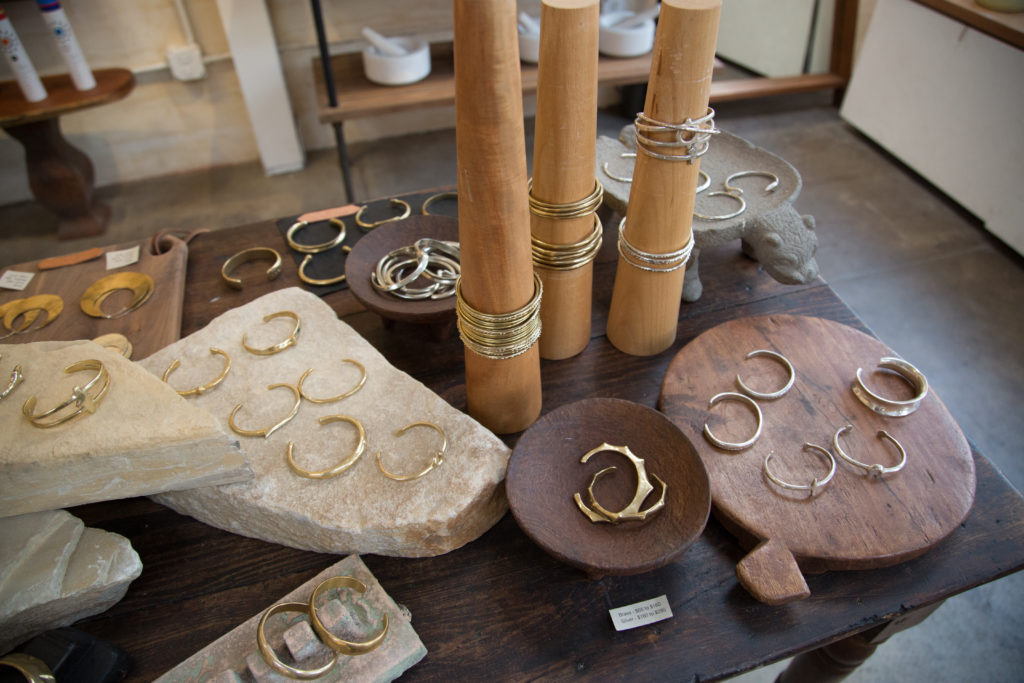 I work primarily in brass and silver but am beginning to work more in gold and am excited to grow my fine collection over the next year. I carve the original designs from wax, and then we cast and hand polish the pieces. We do a lot of work with leather, turquoise, and various braided fibers as well.