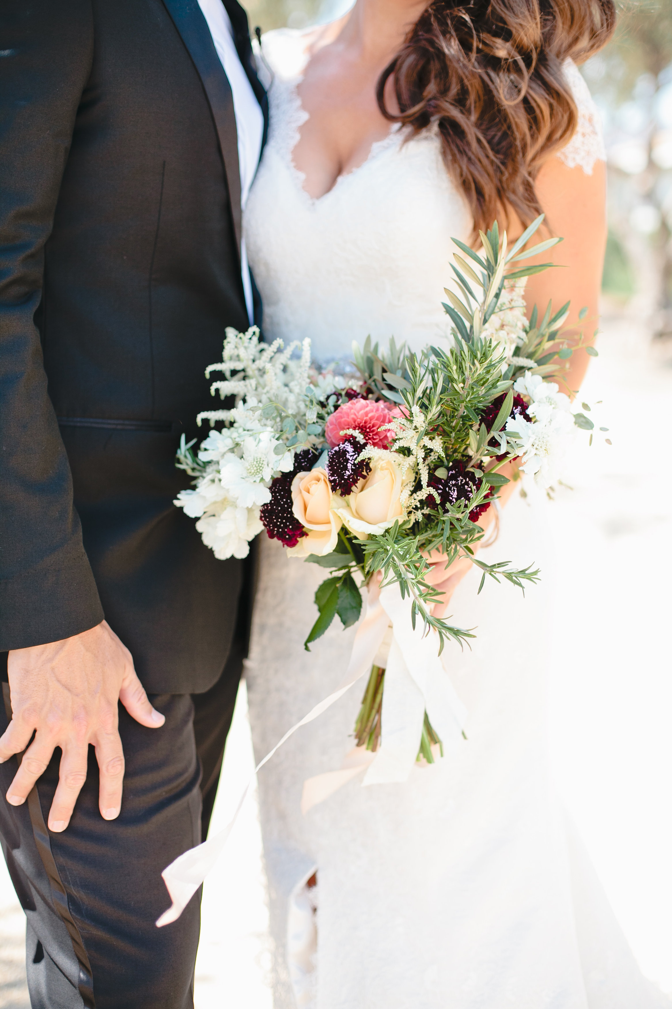 The bouquet was made from locally grown olive, Rosemary, caramel garden roses, white fama, black knight scabiosa, tuberose and orange spice dahlias (all grown on the lovely Central Coast)