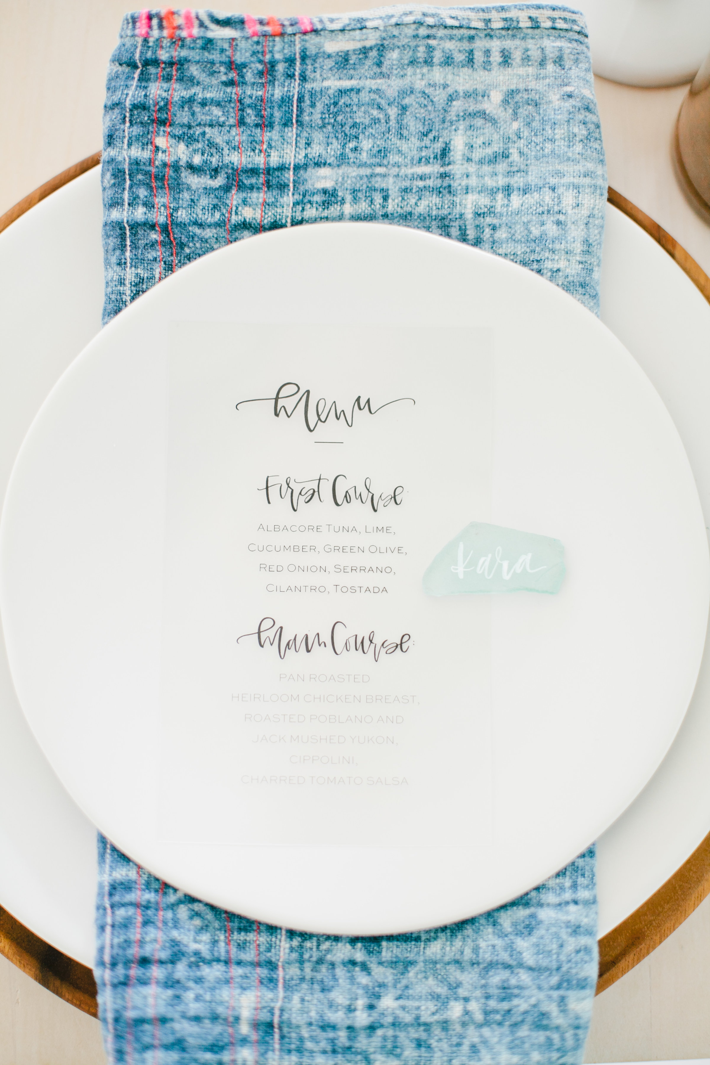 A Fabulous Fete did the gorgeous calligraphy. Each guest found their seat via a piece of sea glass that had their name on it. We also had some fun signage and menus made to complete the look.