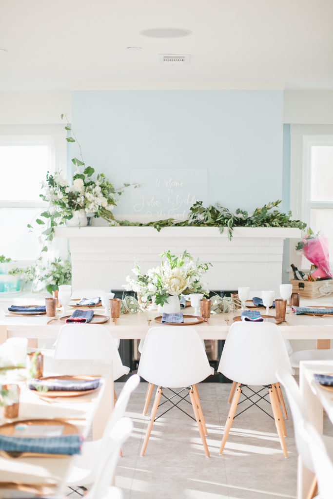 I used the colors of the coast to create a pretty color palette reminiscent of the beach and ocean. Julia is so stylish, she was easy to work with and bounce ideas off of. The party turned out so pretty and I’m so excited to share it today! Megan Welker took all of the beautiful photos, capturing all the fun so perfectly. This party is also up on Inspired By This today!