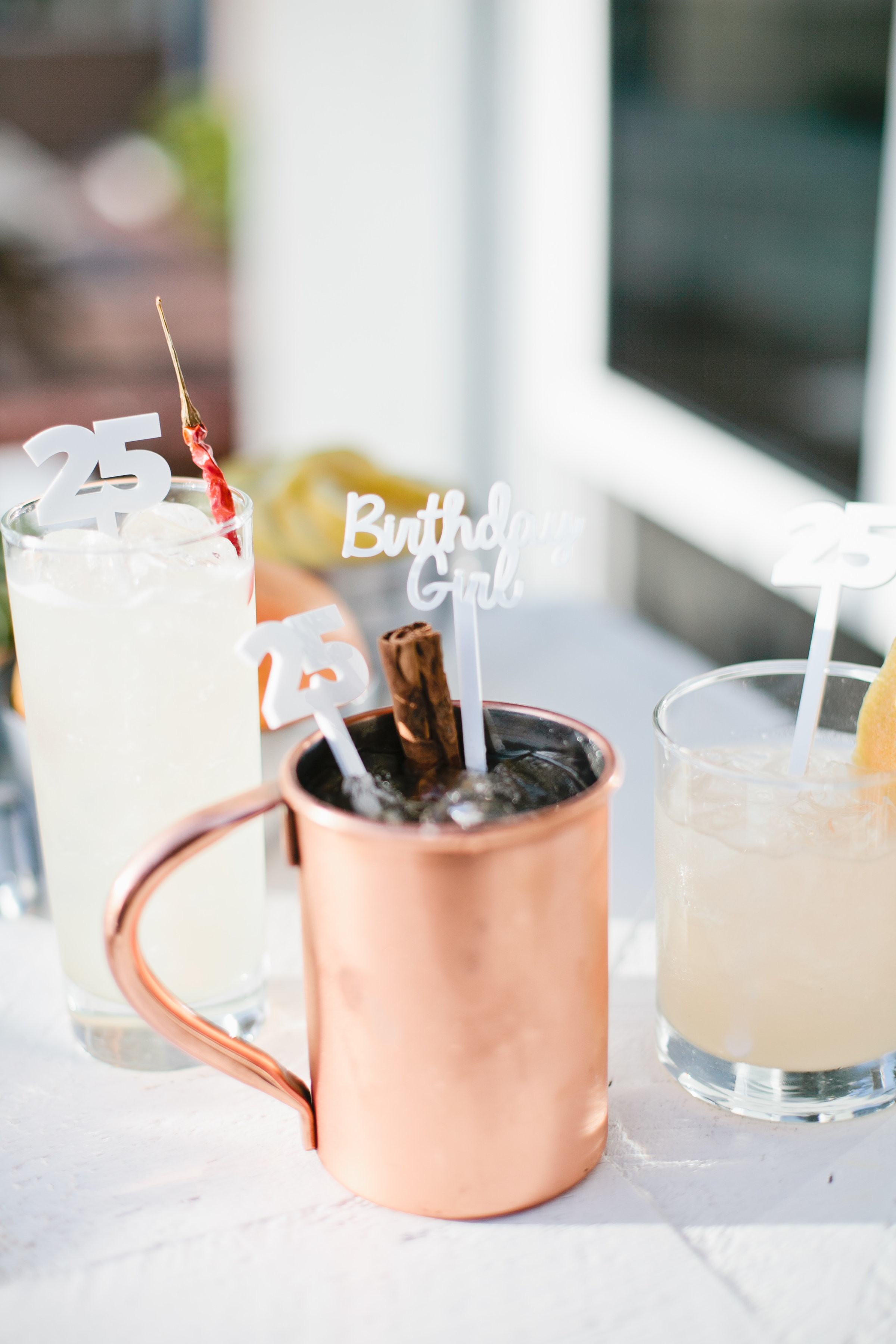 The lounge area from Witty was the perfect spot to sit and relax with a cocktail from Pharmacie. We made sure the birthday girl had custom cocktail stirrers from Jenn & Jules Designs to ring in her next year of course! The cocktails seriously looked so yummy!! Just their descriptions had our mouths watering…