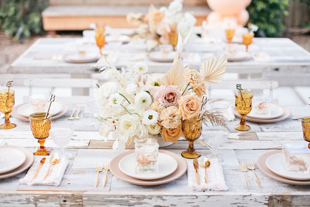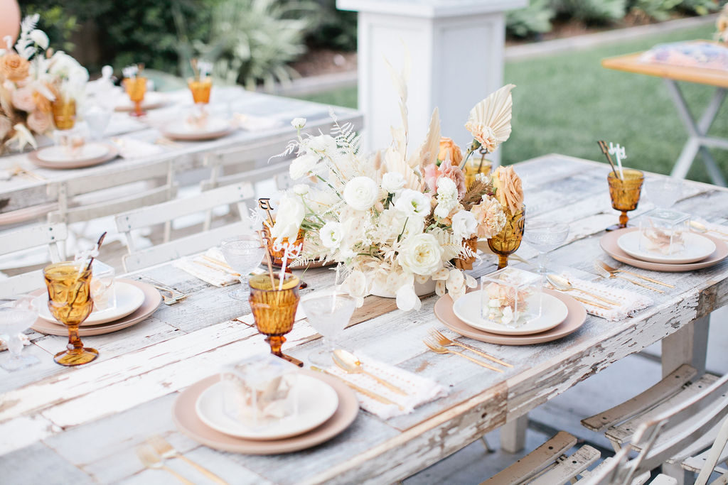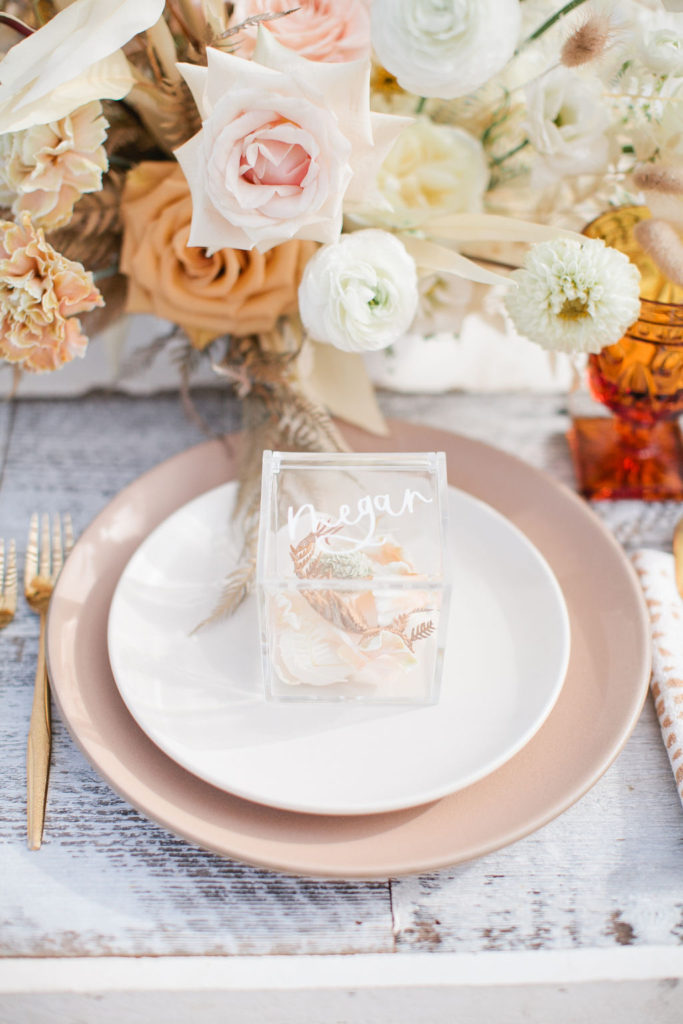 The tabletop is all from Cherished Rentals and it looked so pretty on Sweet Salvage Rentals white washed tables. The napkins are by Hostess Haven and their neutral tones complimented it all so perfectly. Lastly, the place cards! That was a must! Megan had sent Ala an image of something similar so Courtney recreated them, you can get them in her shop here!