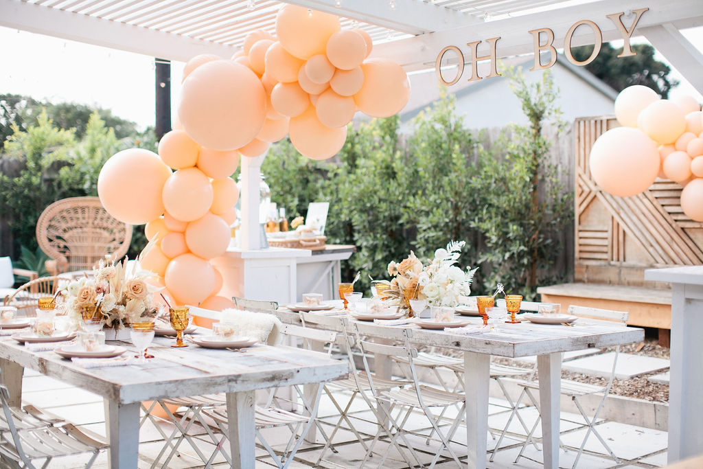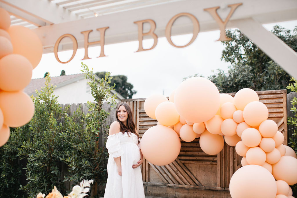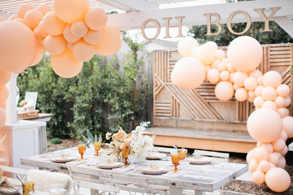 My backyard was decked out with cream toned balloons by The Pop Shop. I was blown away by how pretty it looked!! I love the impact a single color has!! The “Oh Boy” signage is so cute too, again by Poppy Jack!