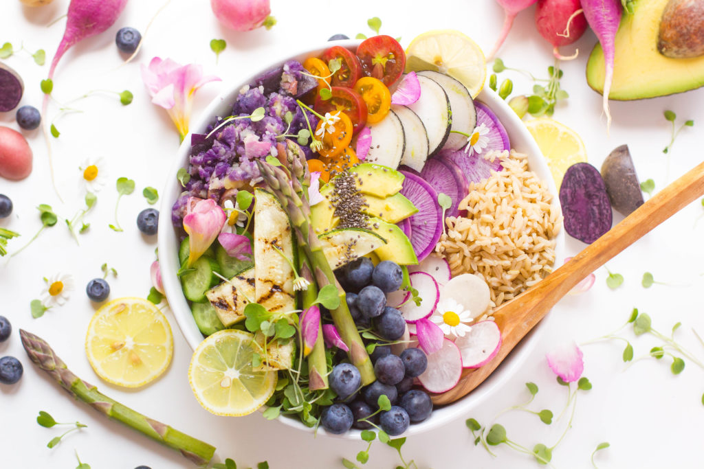 Layer arugula on the bottom of your bowl. And I sometimes will toss the bottom layer of arugula with some dressing before putting in the bowl. Then layer with brown rice. Then simply pile together your ingredients next to each other. Lastly, drizzle the citrus vinaigrette, and serve immediately. So, there are no rules to Buddha bowls, it’s all about healthy options all in one place, cooked or not cooked. Totally up to you, which is fun especially for the kids. As a result, it gets them to eat their veggies. Or so we hope!