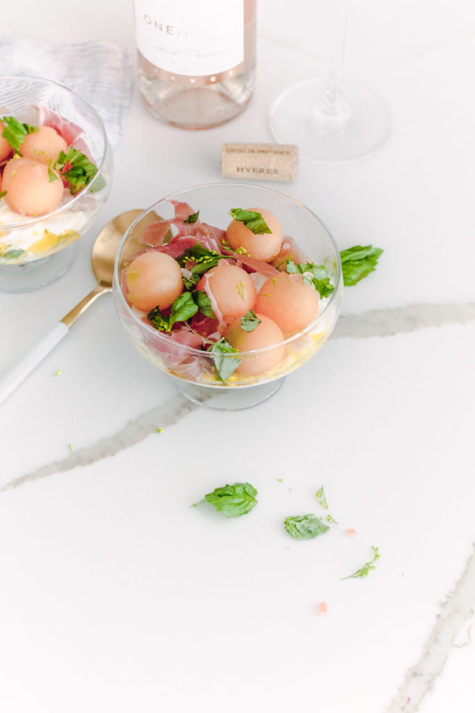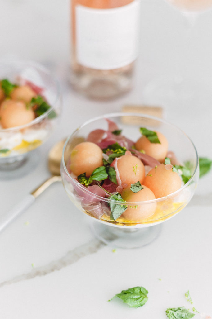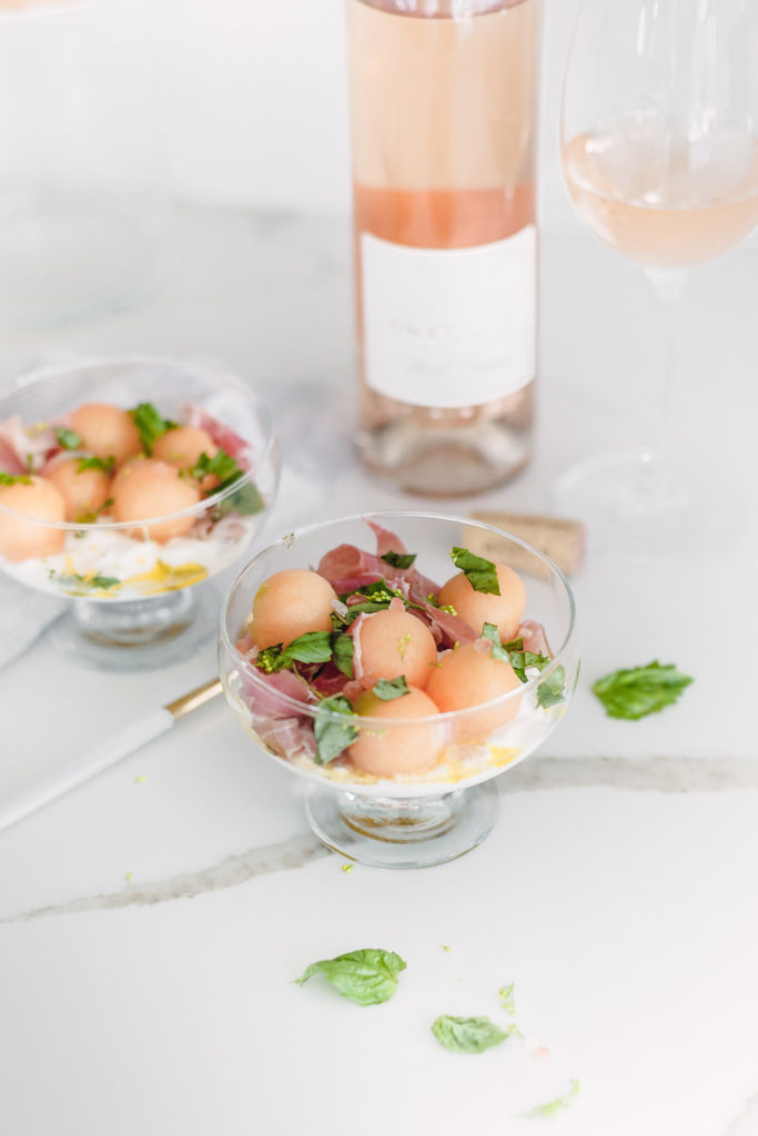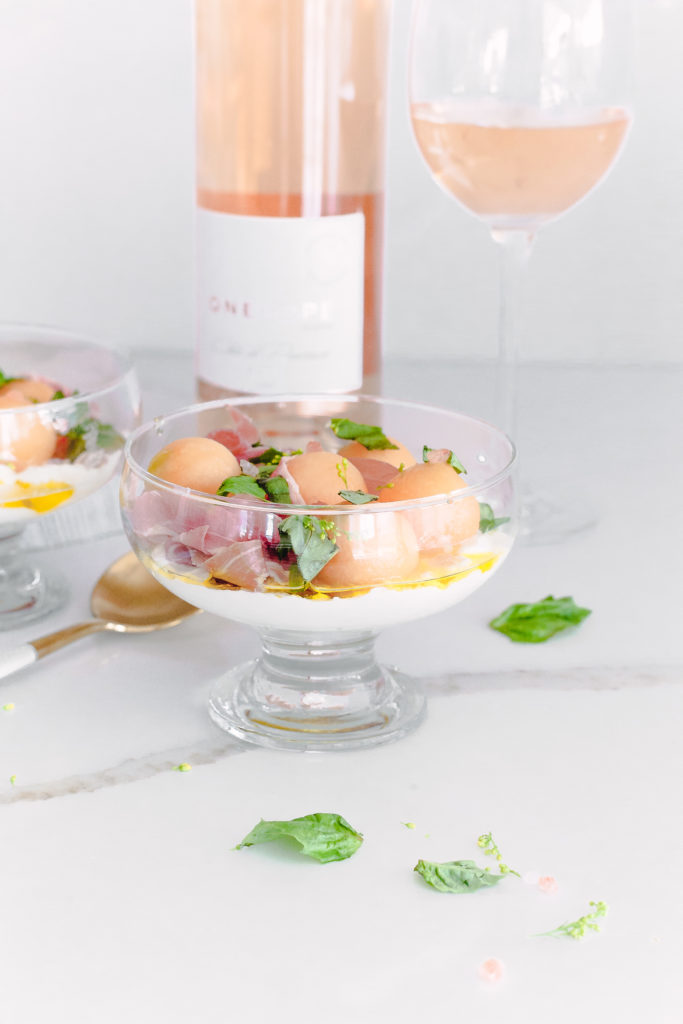 Fresh summer cantaloupe paired with salty prosciutto and creamy burrata, and you have a little dish of heaven. Serve this summer dish with a light, crisp cold rosé like our favorite from One Hope Wine, and you are soaking in all the summer vibes, even through fall. Don’t go summer!