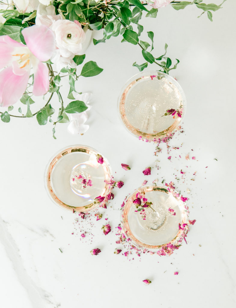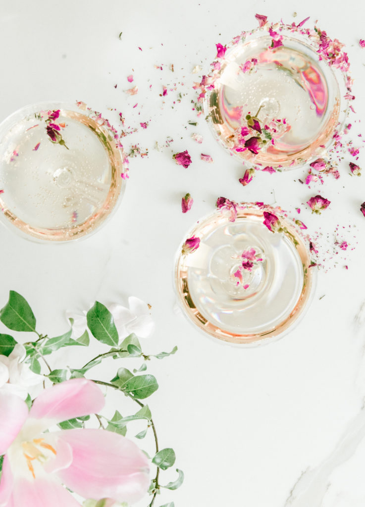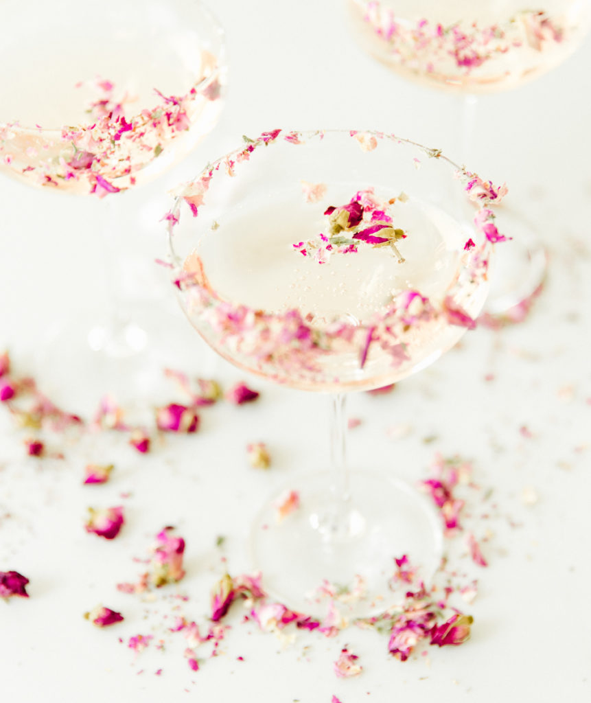 What makes this cocktail extra pretty, is, of course, the florals. I’m all about the garnishes, but it can be hard sometimes to find florals that are edible, especially for this type of cocktail that needs edible roses. I found some great online options for edible flowers. Gourmet Sweet Botanicals is an excellent online source for edible flowers, micro greens, and tiny veggies! They ship overnight to ensure the products are their freshest!