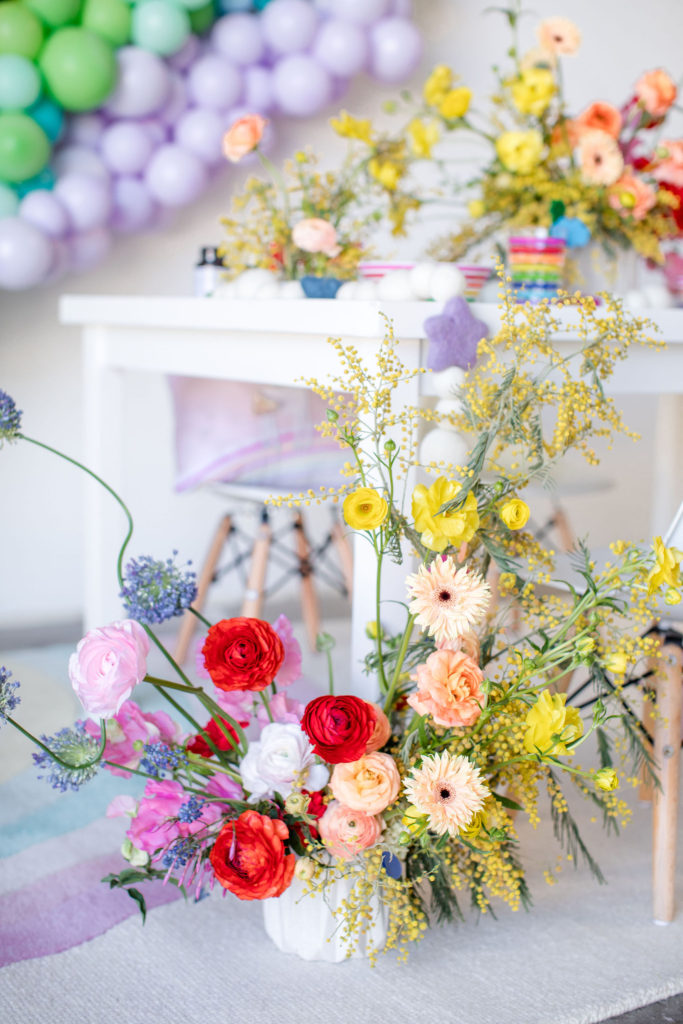 We weren’t lying about color! I love playing with color and boy was this one fun! The Flour Shop tabletop items really inspired this party for me! I loved the bright fun colors and the little happy face in the bowl. And how amazing are the balloon installation and the flowers?! I can’t get enough!!! The Pop Shop and Not Just in Novels know how to play with color and I love them for it!