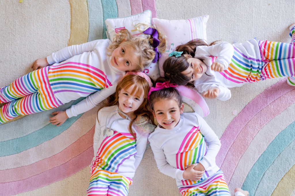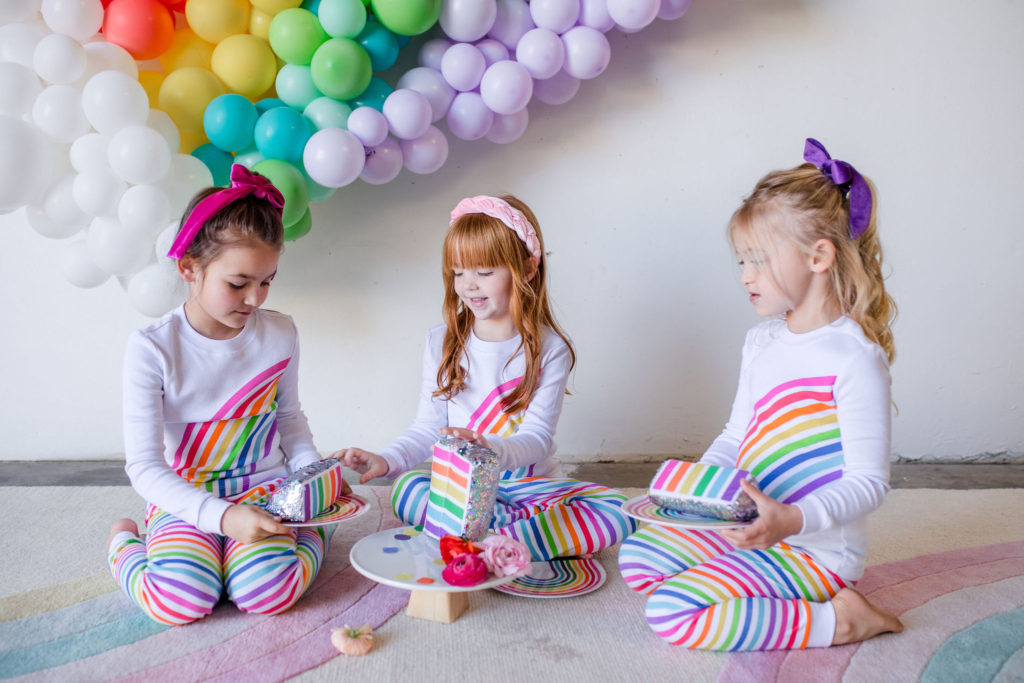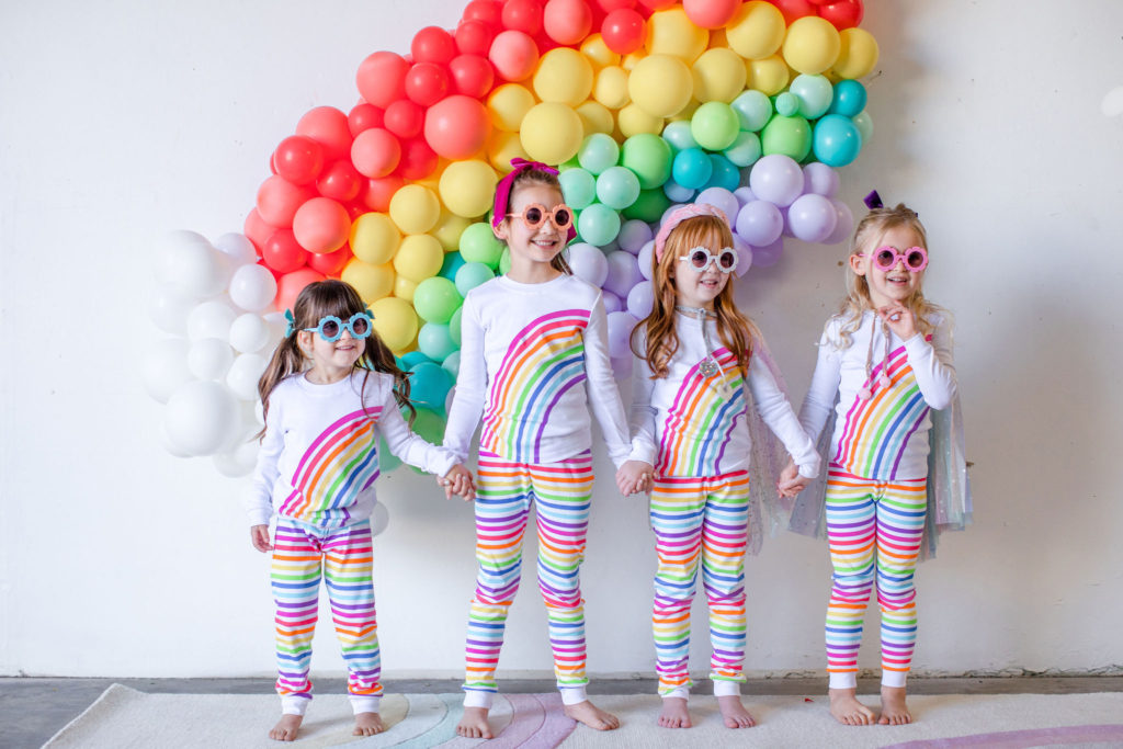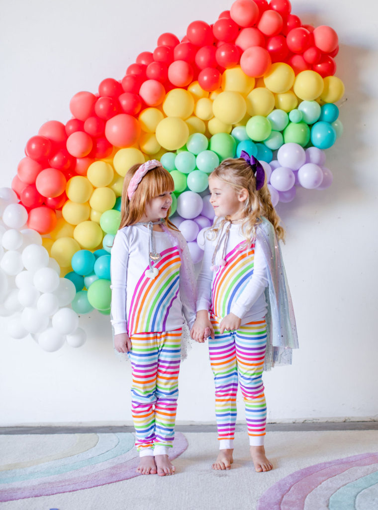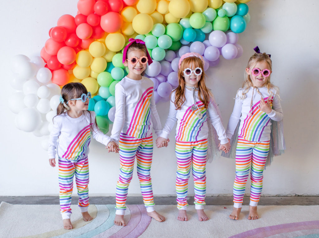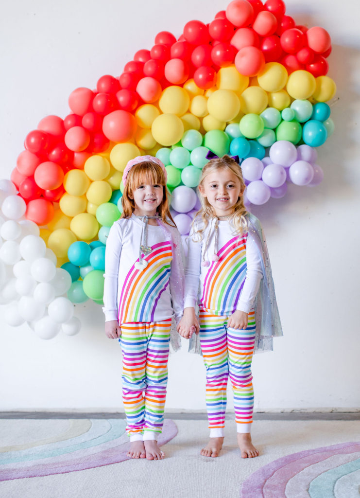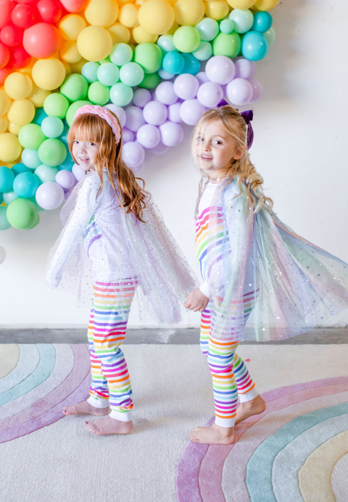 Our little guests are in the most adorable rainbow pajamas that would make for the sweetest sleep over gift! I just die for matching jammies, you can ask my husband – my kids in matching pajamas is everything to me!!
