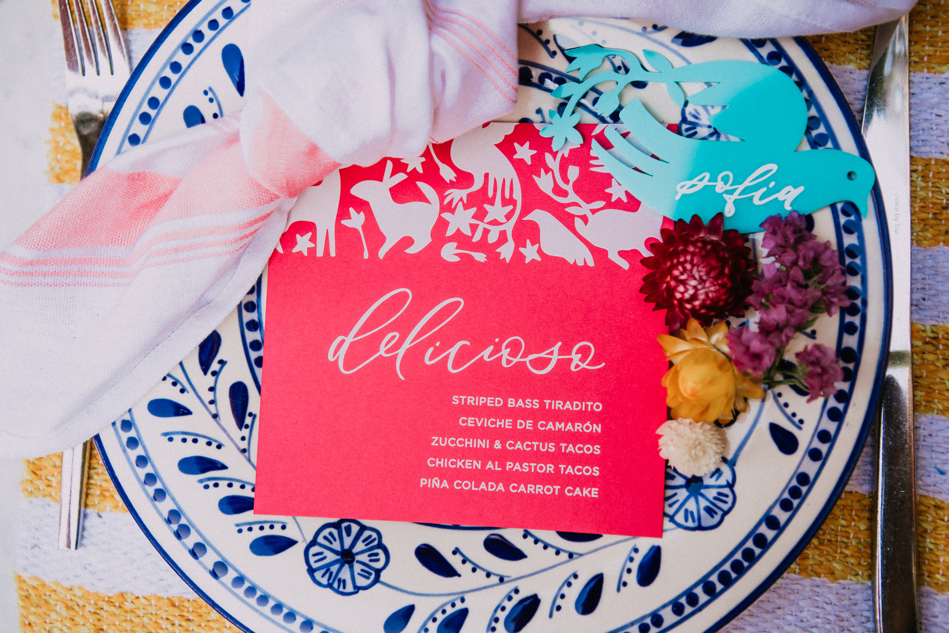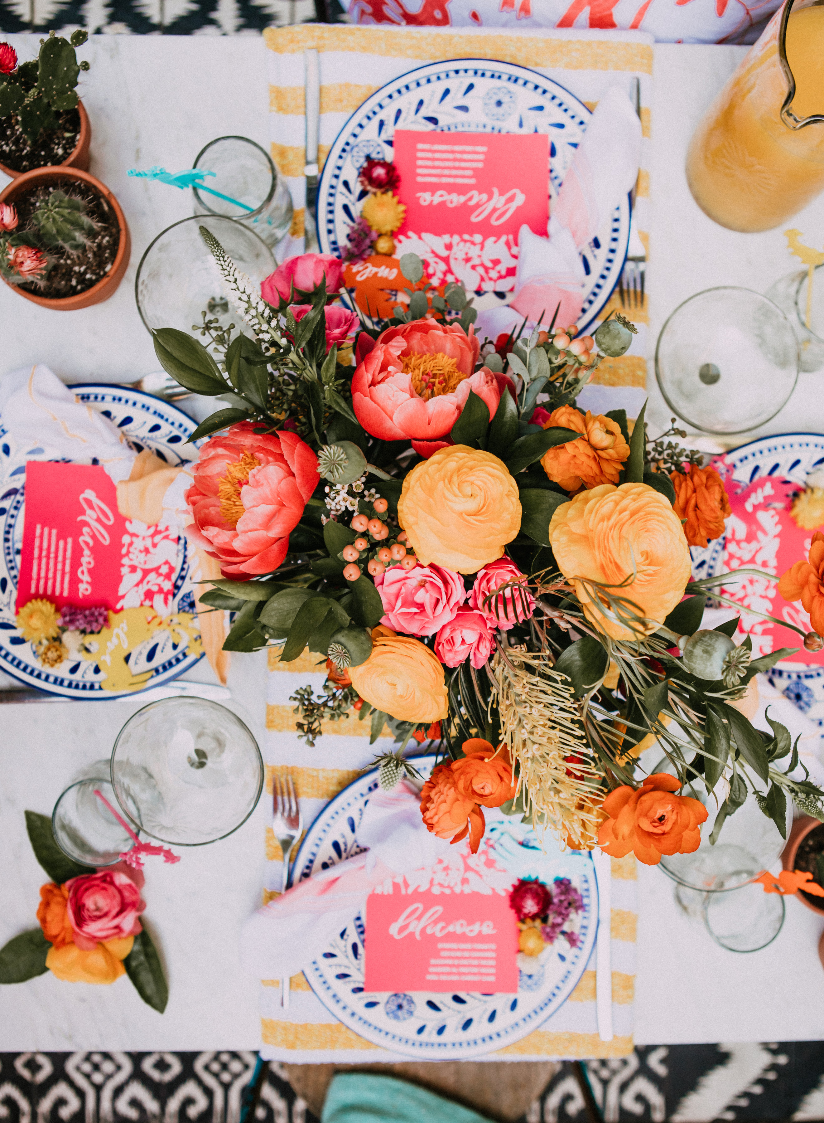 Speaking of girlfriends, my friend Julia from San Diego Songbird and Gunn & Swain helped me plan this fun shoot and styled the wardrobe for our models. Always fun collaborating with that babe! Back to the Otomi…. I love that print and have been a fan of it since Leah’s wedding. She got married in Cabo and had that print on her tables, so I will forever associate it with Mexico and how fun it is!