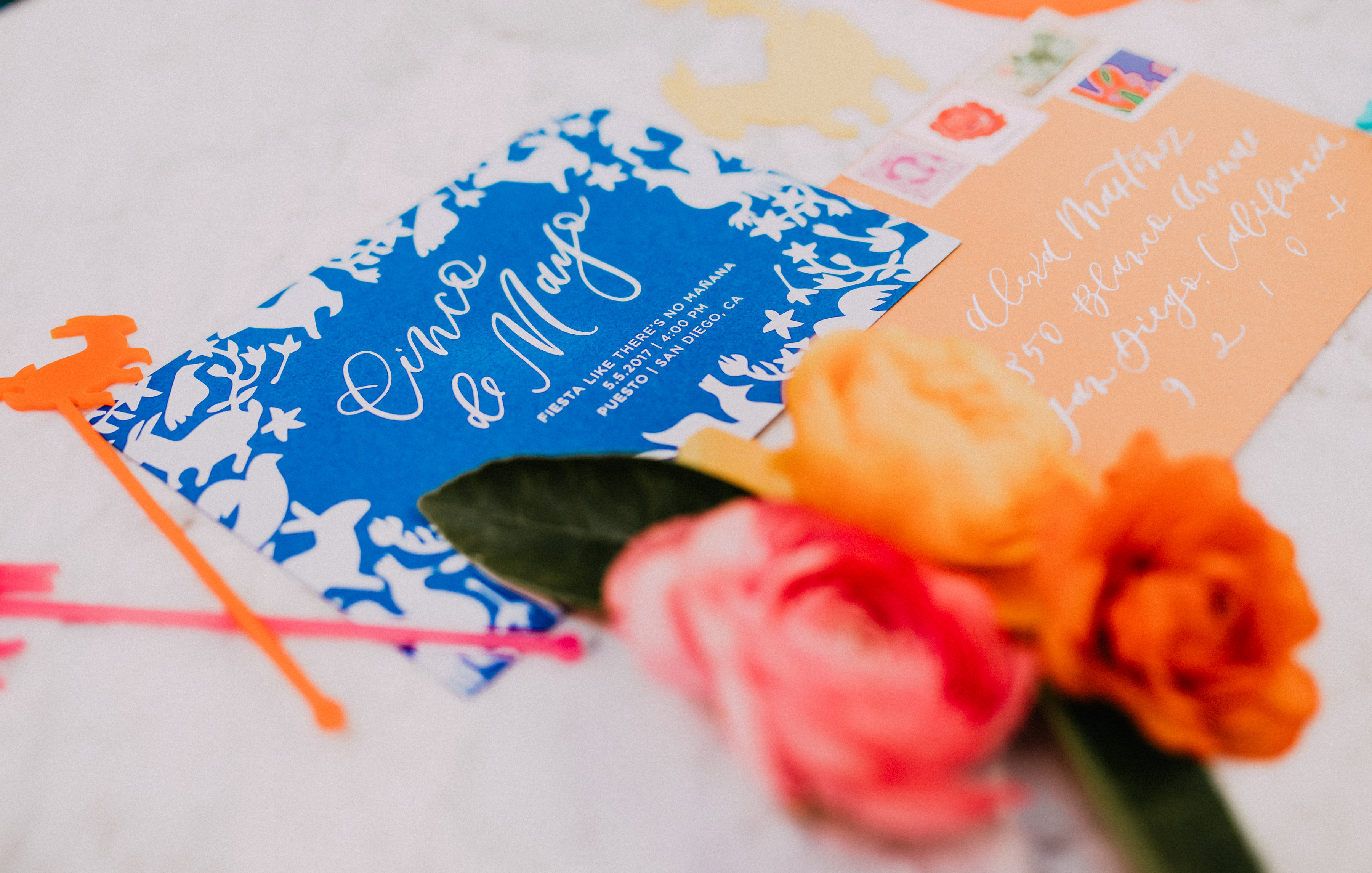 Call me old fashioned, but I like to start these posts out with the invite. This one is beyond gorgeous and I’m in love with all the color! Taryn of Twinkle & Toast is one of the prettiest hand calligraphers I know, she designed this one. It’s styled with the cutest Otomi cocktail stirrers and acrylic place cards by The Roc Shop, which you’ll see through-out the shoot. These girls work so well together and everything they touch is magic!