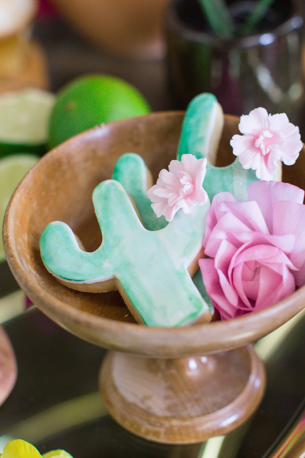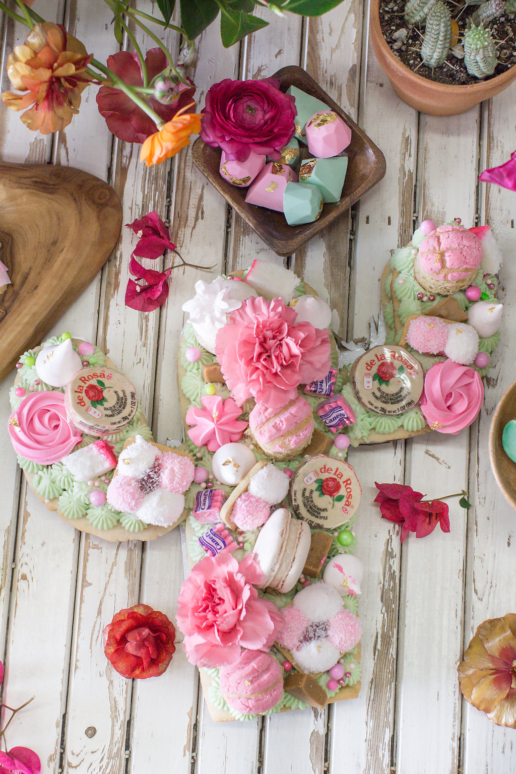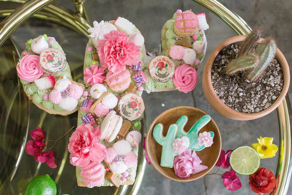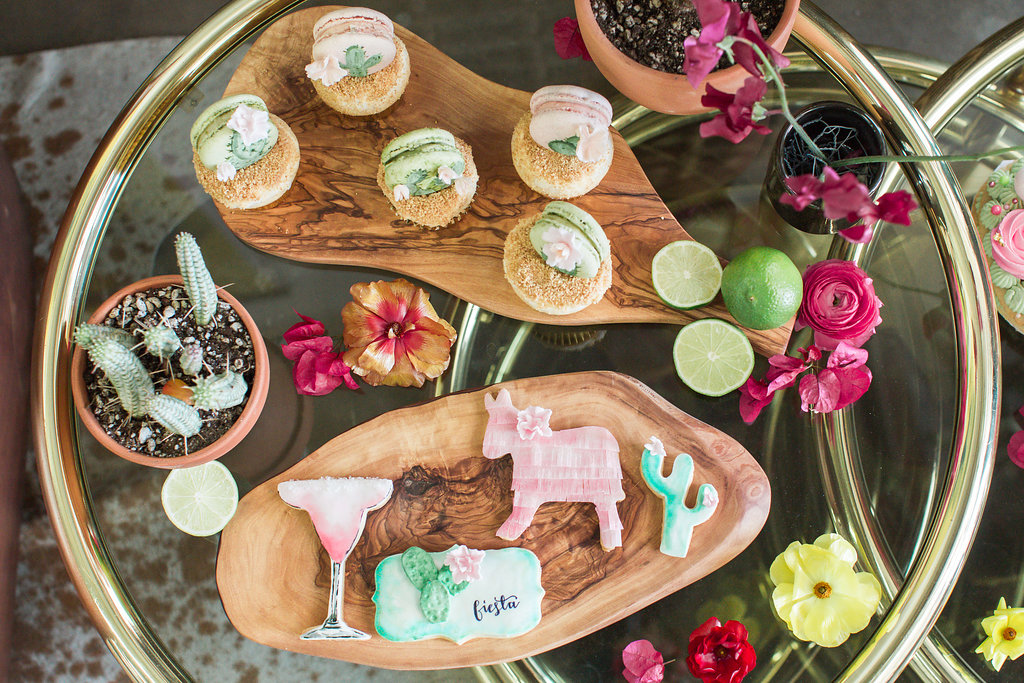 Lastly, every good fiesta needs some dulces!!!  Our friends at Sugar Crush Sweets went to town… That cactus cookie cake is EVERYTHING!  And all the little treats like hand painted cactus cookies, piñata cookies and gold leafed chocolates just complete it.  So much pretty I can’t even stand it!