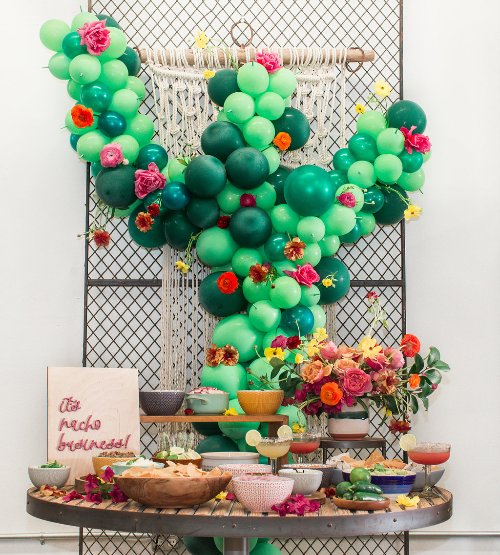 Moving on to more amazingness…  Every fiesta needs a nacho bar with a cactus balloon installation, am I right?!  I mean, it’s really the only way….  Thank you Wild Child for always making balloon magic!