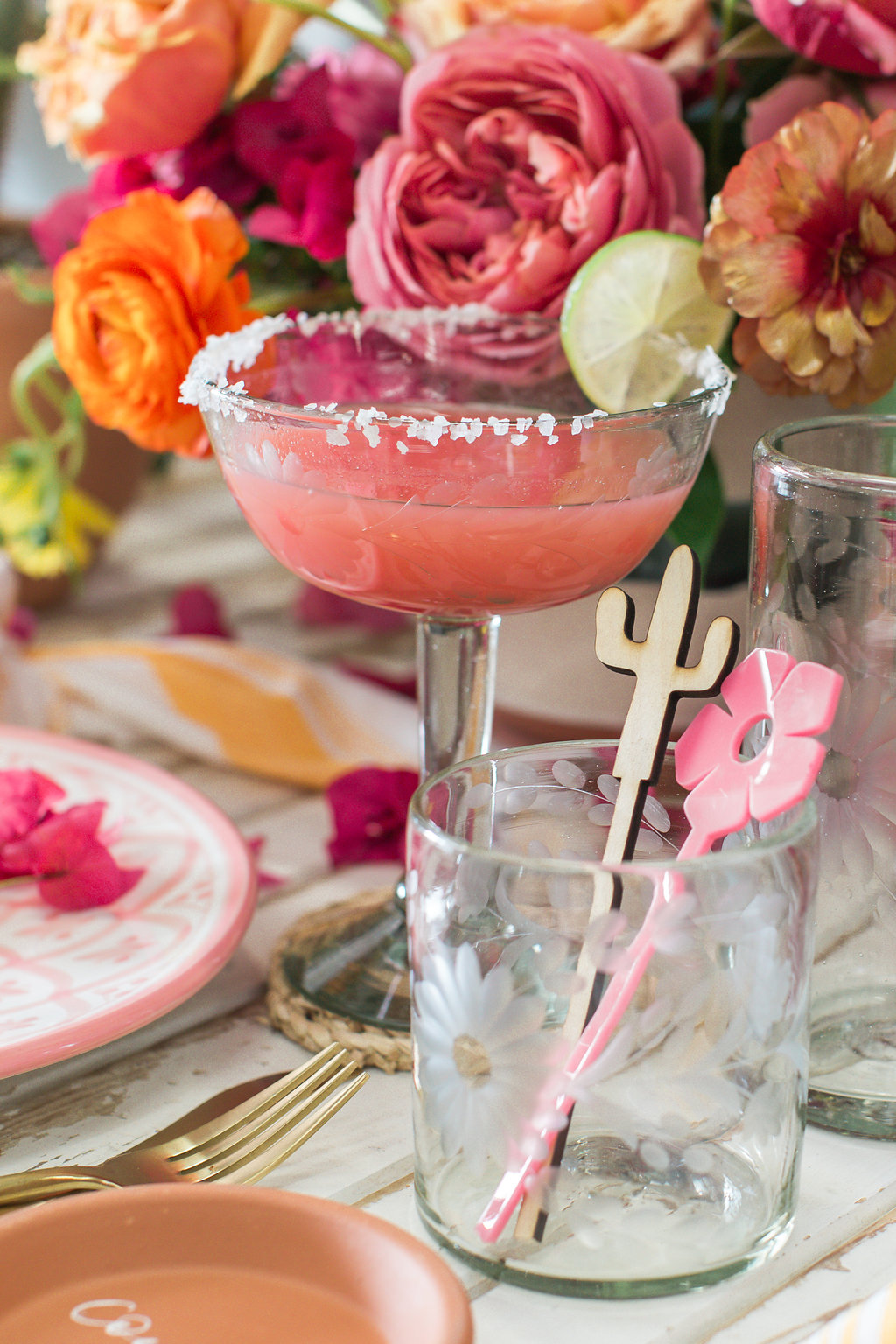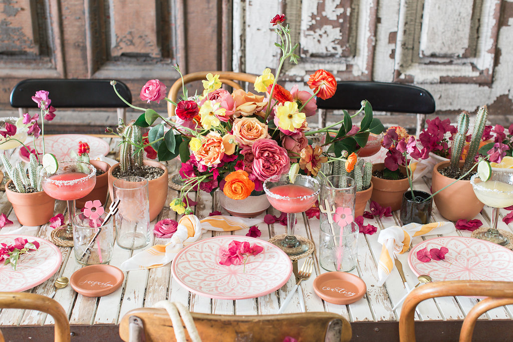 Every year we have a special and colorful Cinco de Mayo Fiesta to share, and this year is no exception!  We’ve shared many a Cinco de Mayo table, some of my favorites are here and here.  This year we are serving tacos, nachos & margaritas, duh!  In addition, using pinks, yellows and orange… And lots of cactus!!  Keep scrolling to see all the fun and don’t forget to head over to Green Wedding Shoes to see more!