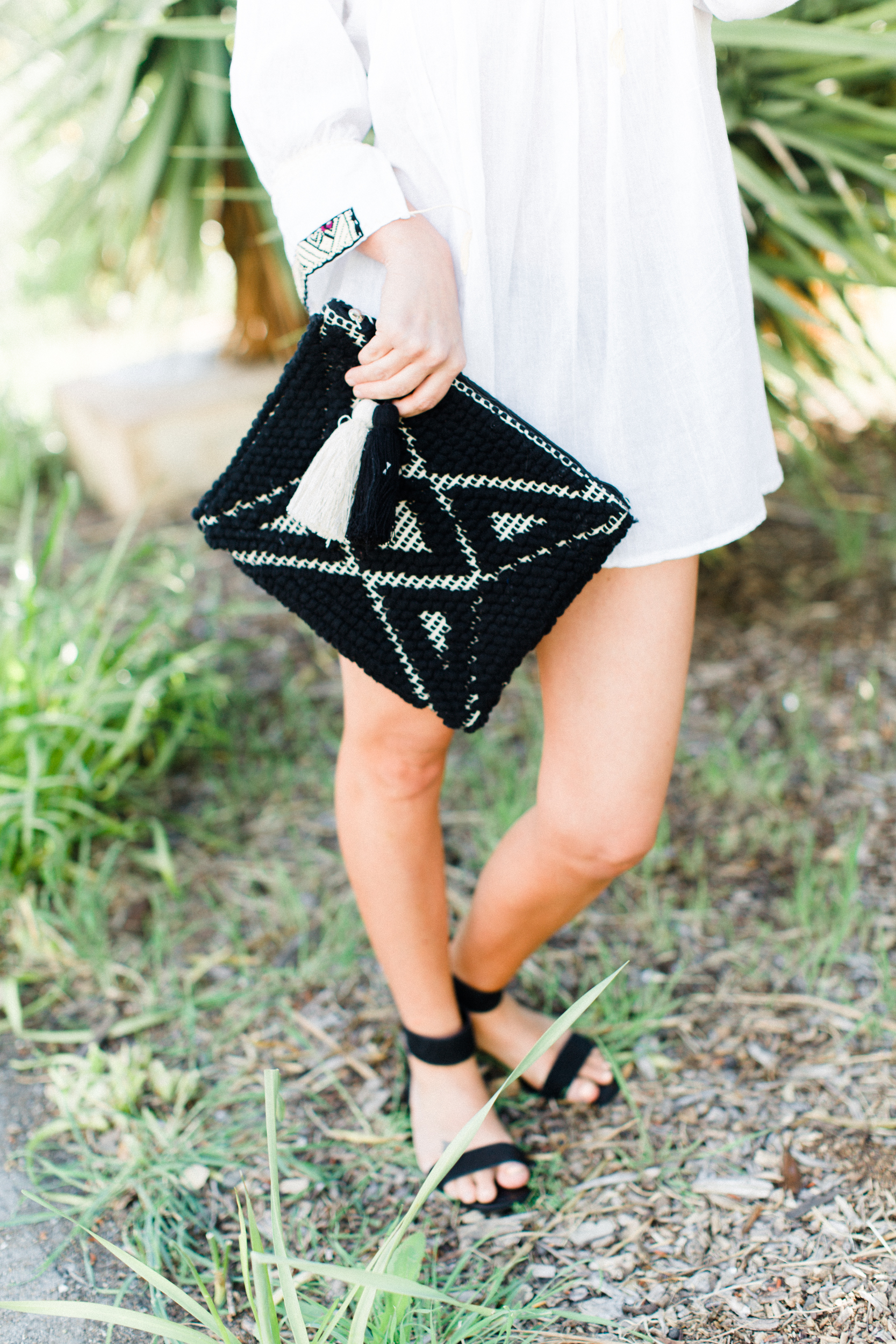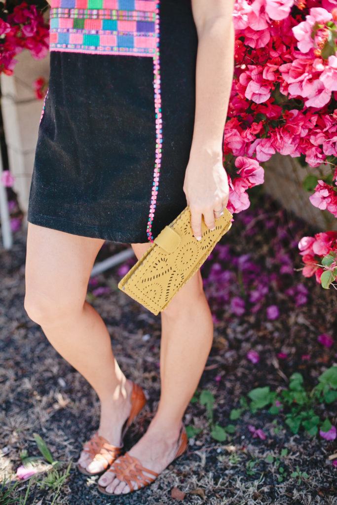I accessorized with our favorite Cleobella Mexicana Clutch in this fun mustard yellow color.  It’s such a great accent color that you can pop in with any outfit – a neutral but not, if that makes sense!  And I’m loving these sandals I just got at Target!  I have to admit, I’m a Target shoe virgin, but Abby has been talking up their shoe selection lately and finding the cutest pairs!! When I checked it out I ended up buying two pairs!!  Seriously you gotta check them out!