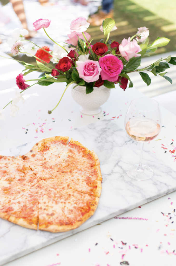 For food we had heart shaped pizzas made from favorite local pizza spot, Sgt. Pepperoni’s! Rosé for the mamas of course, gotta keep with that pink theme ;)