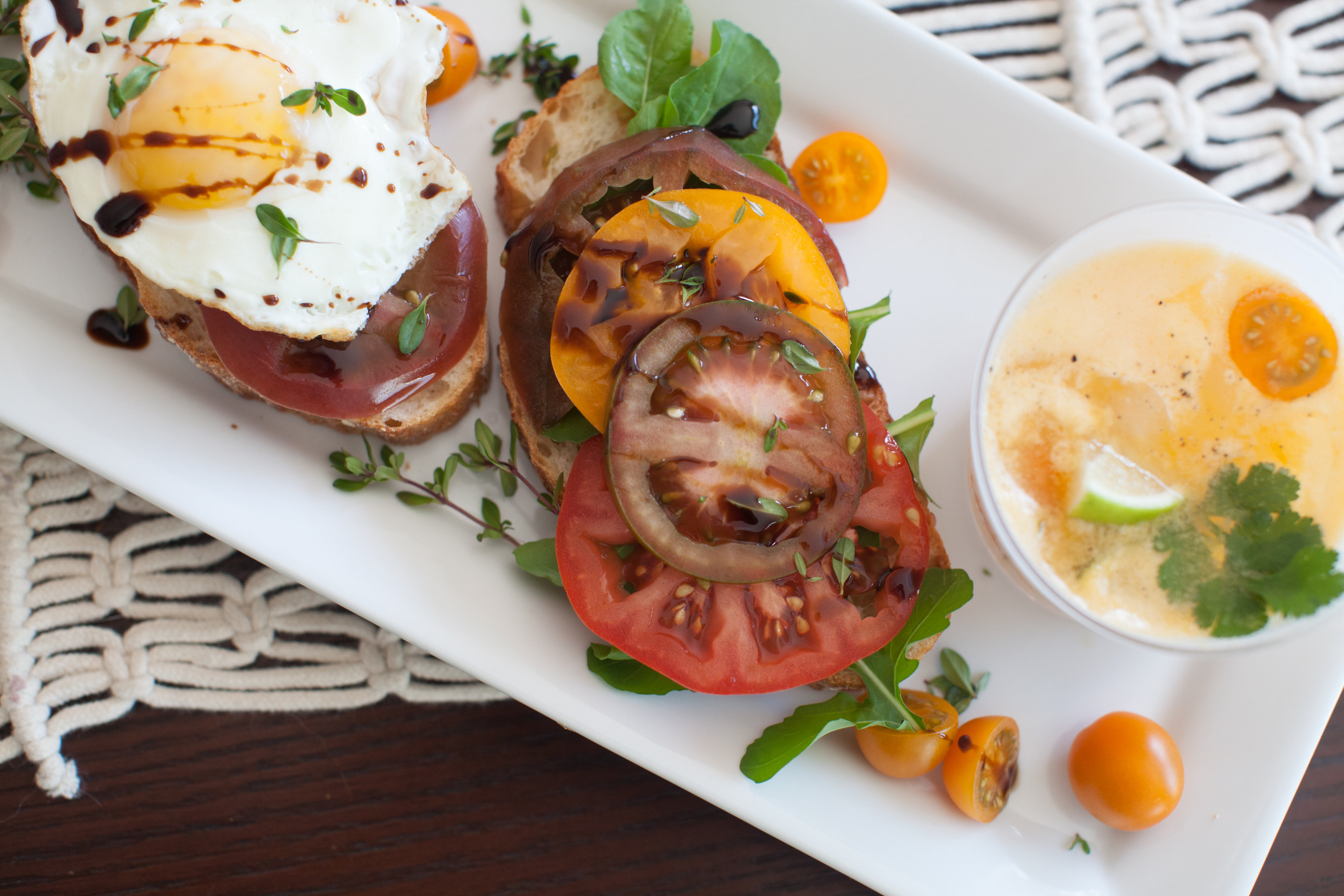 Brunching it up this warm sunny weekend? We got you covered for the perfect brunch cocktail + paired with some yummy heirloom tomato egg toasts!