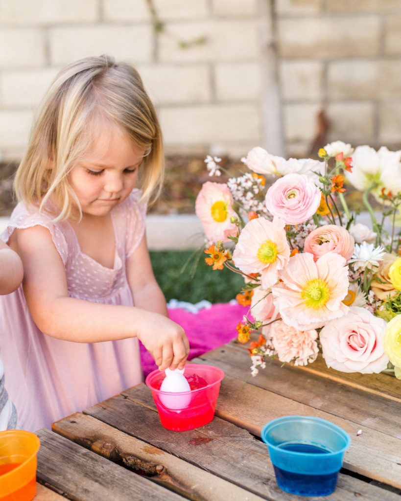 With any holiday comes traditions, and with Easter comes dying eggs! I always like to celebrate each holiday and make each tradition special by hosting a little party. It makes it much more fun for my kiddos and it gets it out of the way for all the parents involved! Such a win/win there!! This year we went full on colorful and fun with a morning bash! Pajamas encouraged!! Aren’t the days where your kiddos are cozy and don’t even get out of their pajamas some of the best days?!