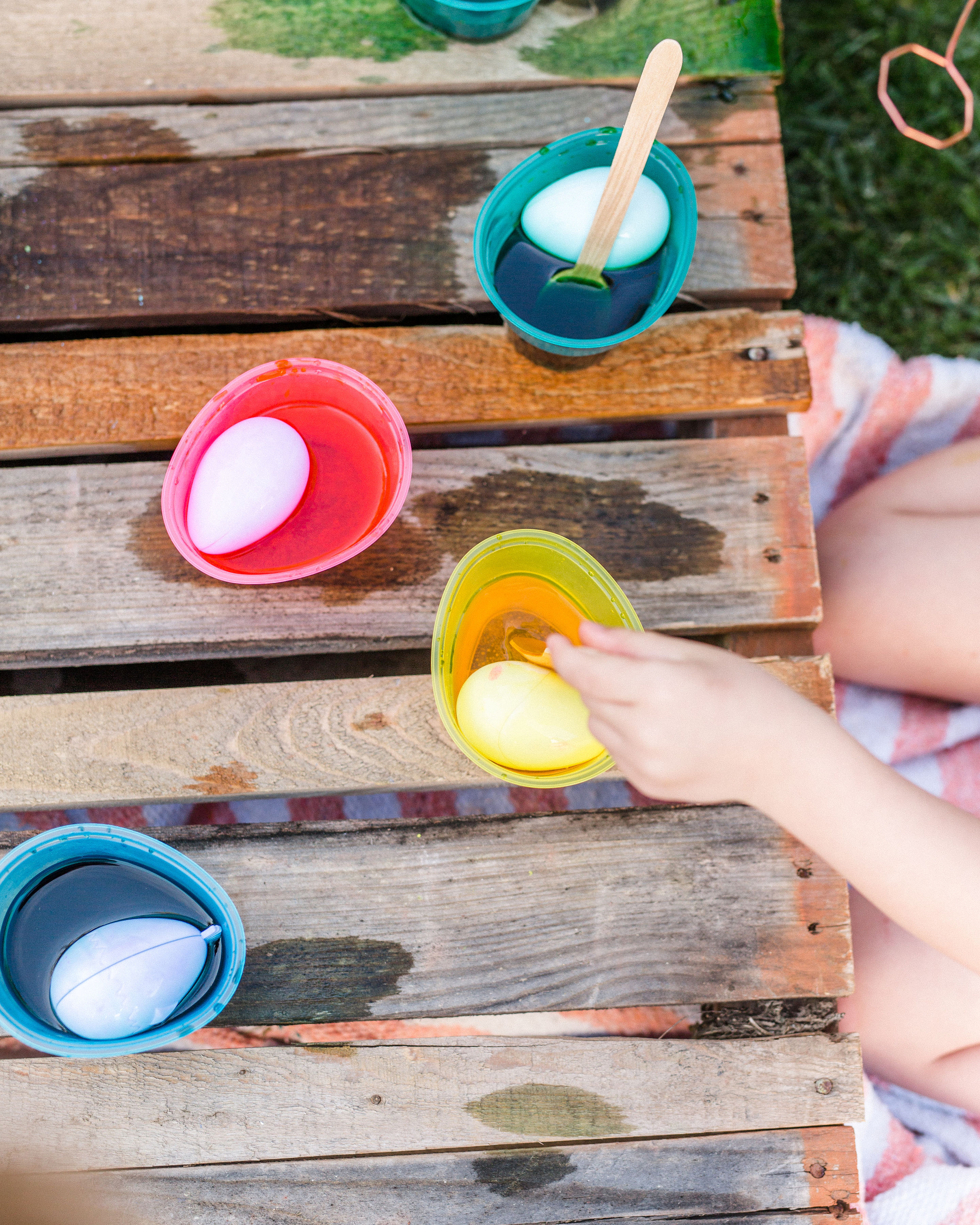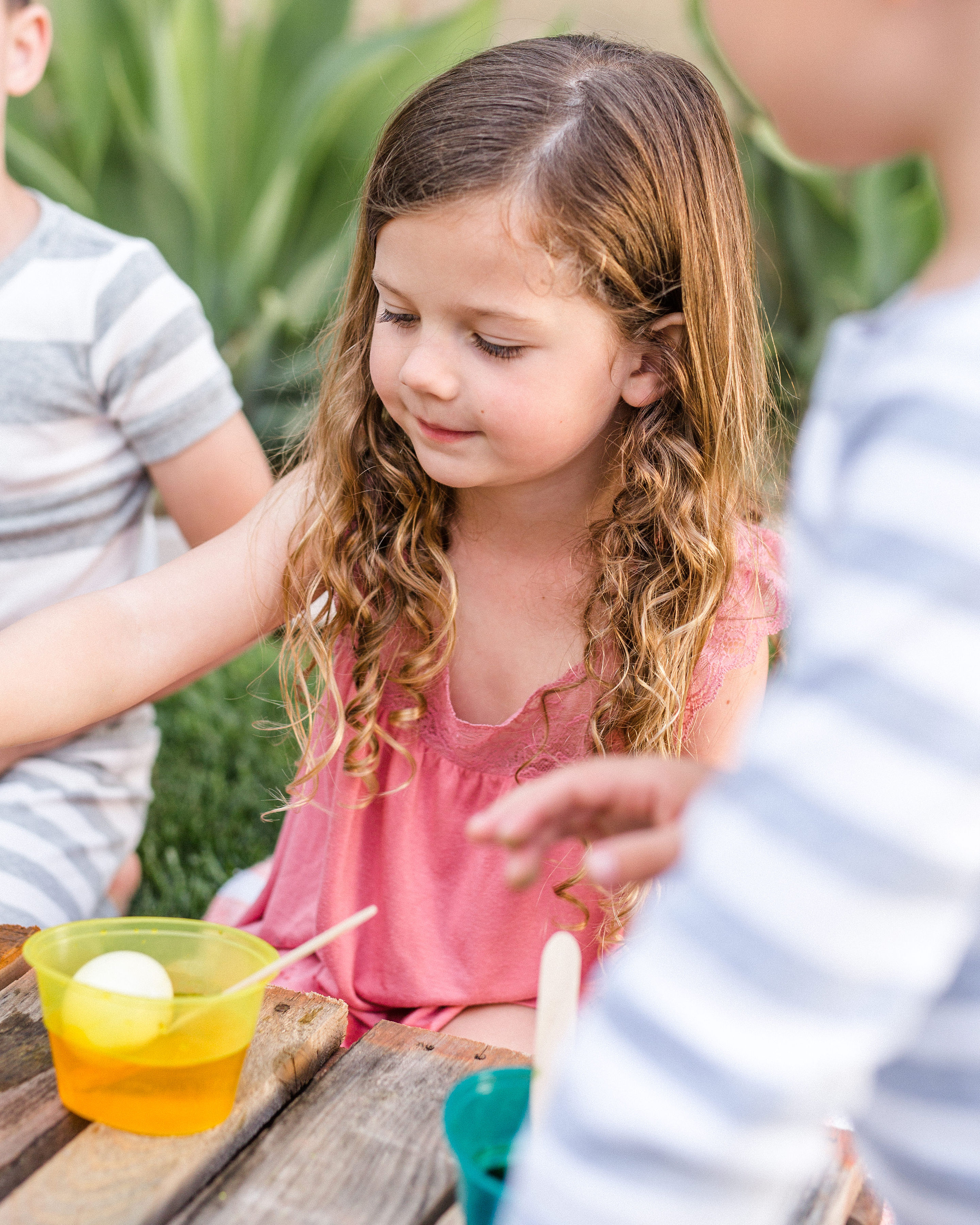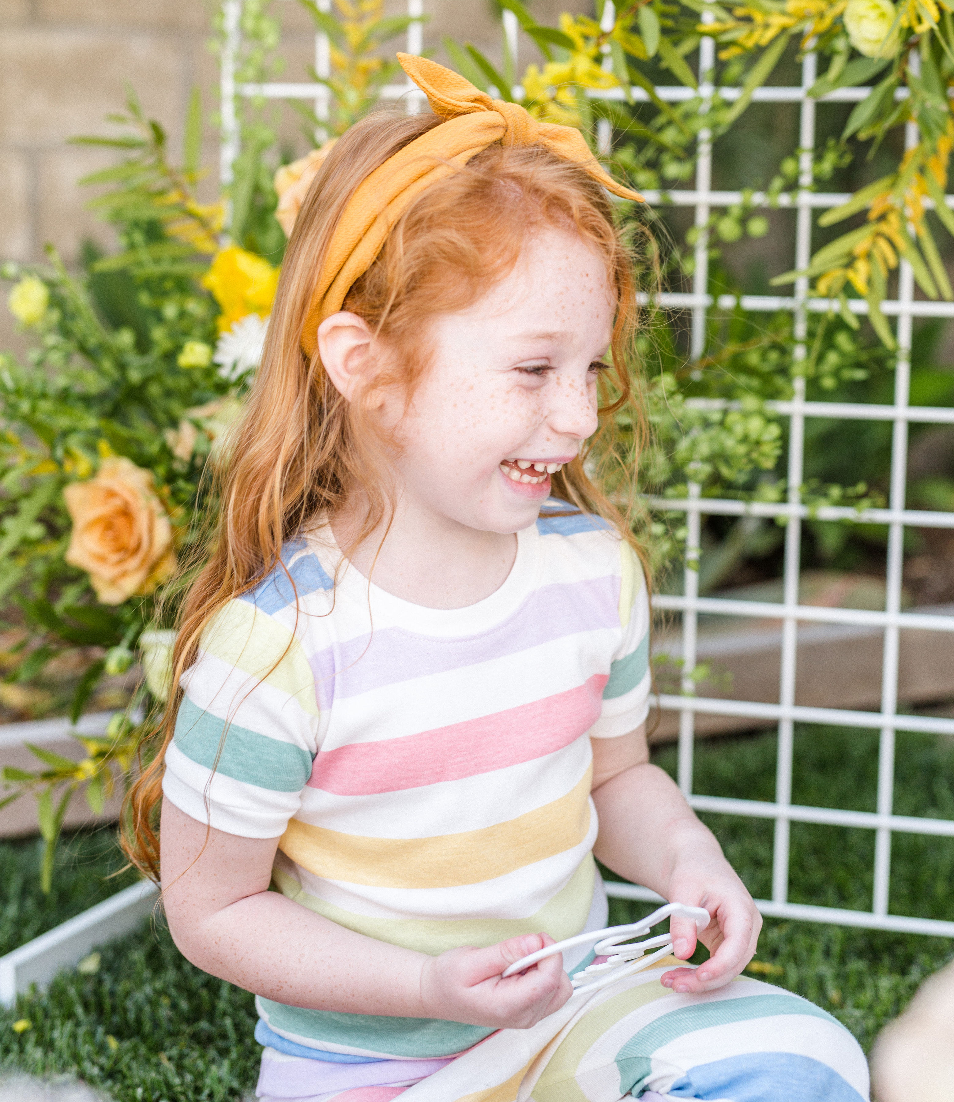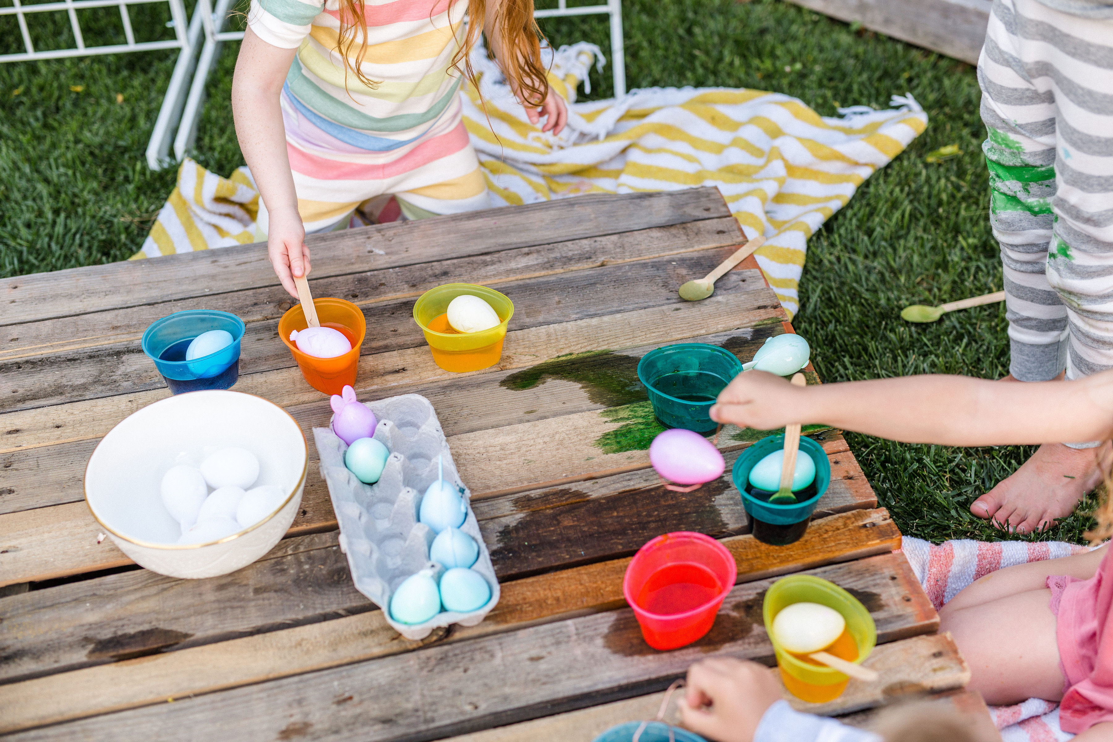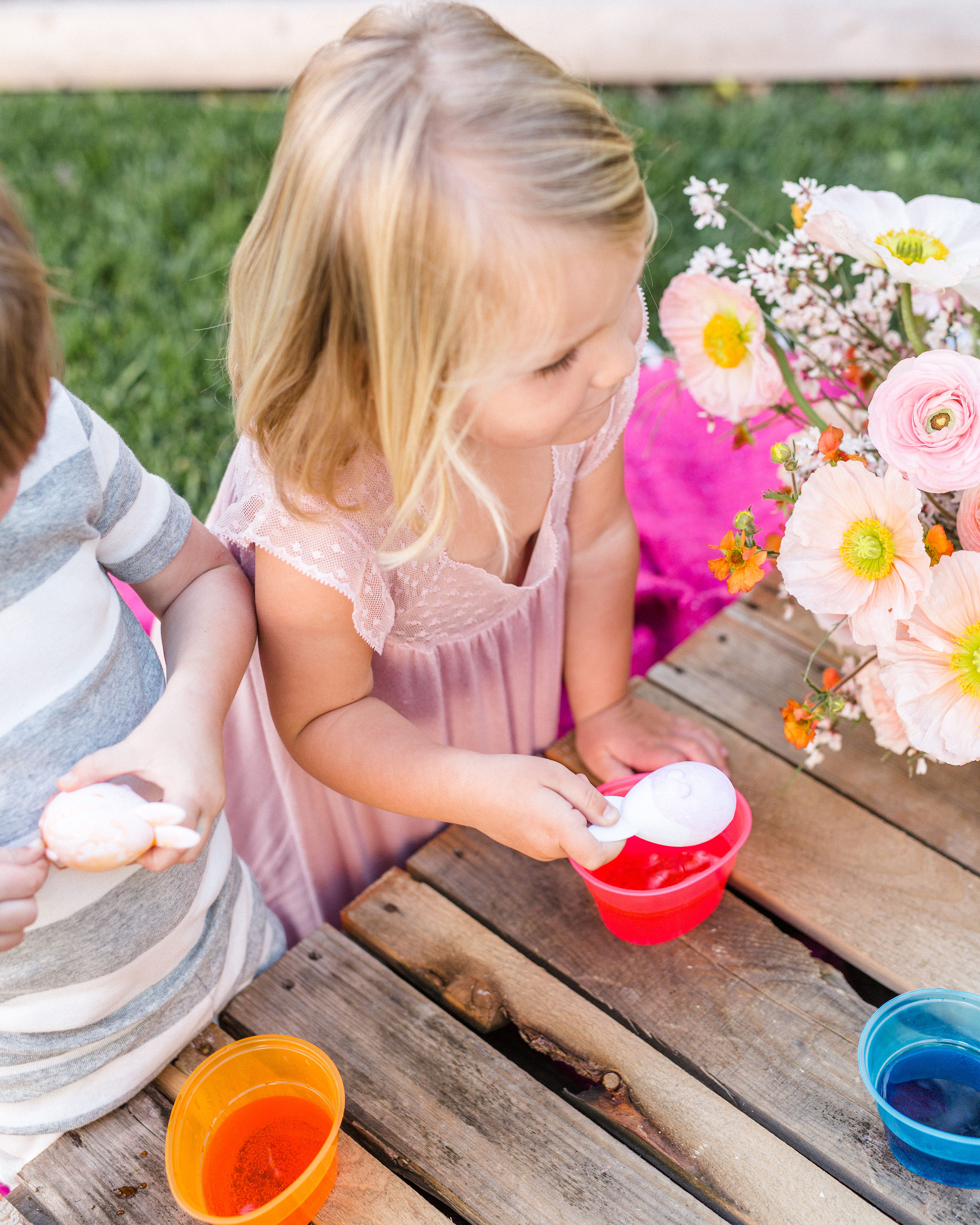 With any holiday comes traditions, and with Easter comes dying eggs! I always like to celebrate each holiday and make each tradition special by hosting a little party. It makes it much more fun for my kiddos and it gets it out of the way for all the parents involved! Such a win/win there!! This year we went full on colorful and fun with a morning bash! Pajamas encouraged!! Aren’t the days where your kiddos are cozy and don’t even get out of their pajamas some of the best days?!
