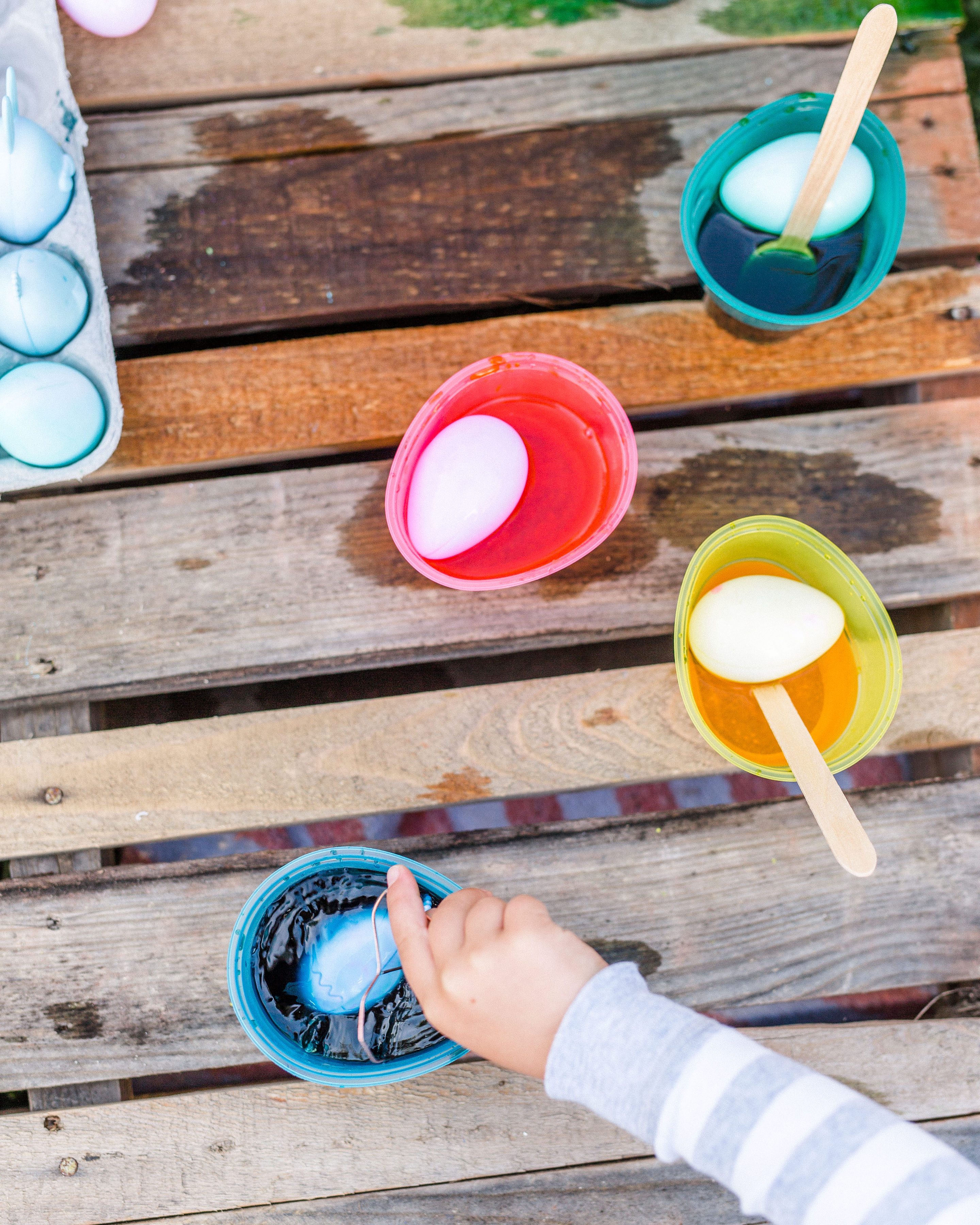 For the eggs, I found these cute plastic ones at Target! We dyed them and my boys and I re-used them so many times doing “practice Easter egg hunts” – one of their favorite Spring activities!