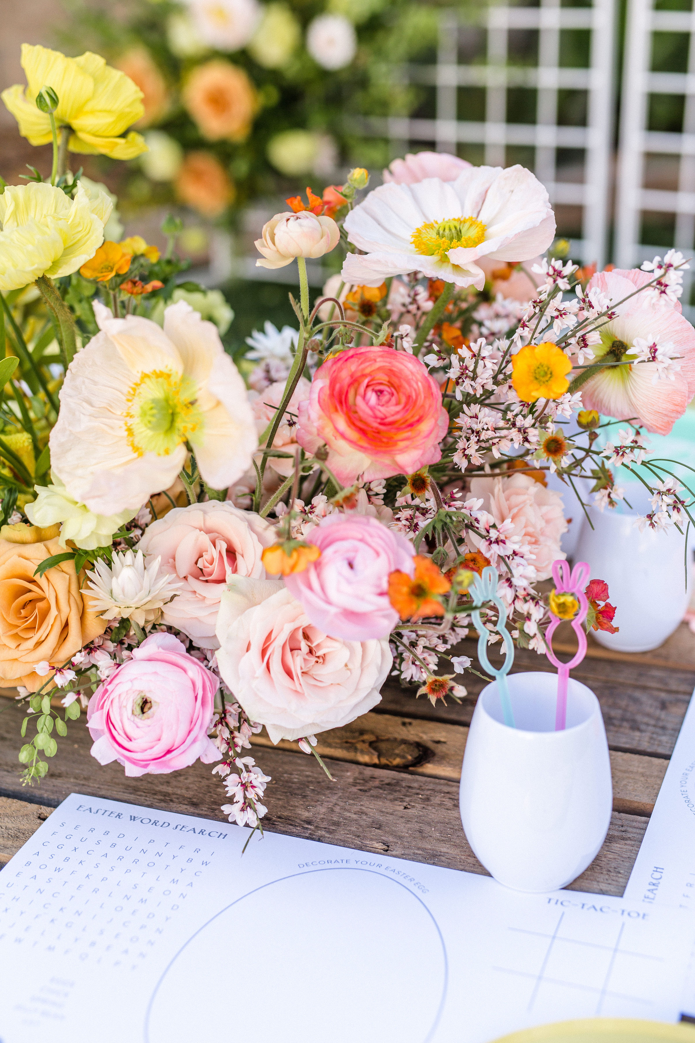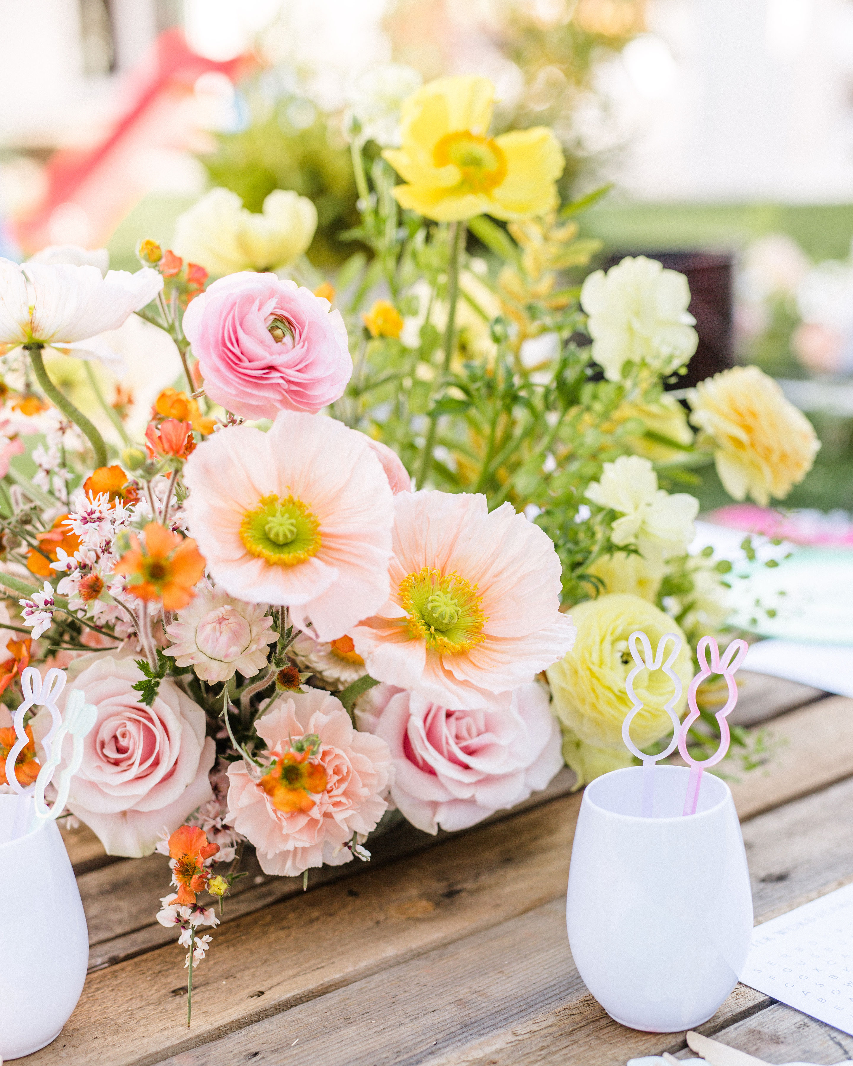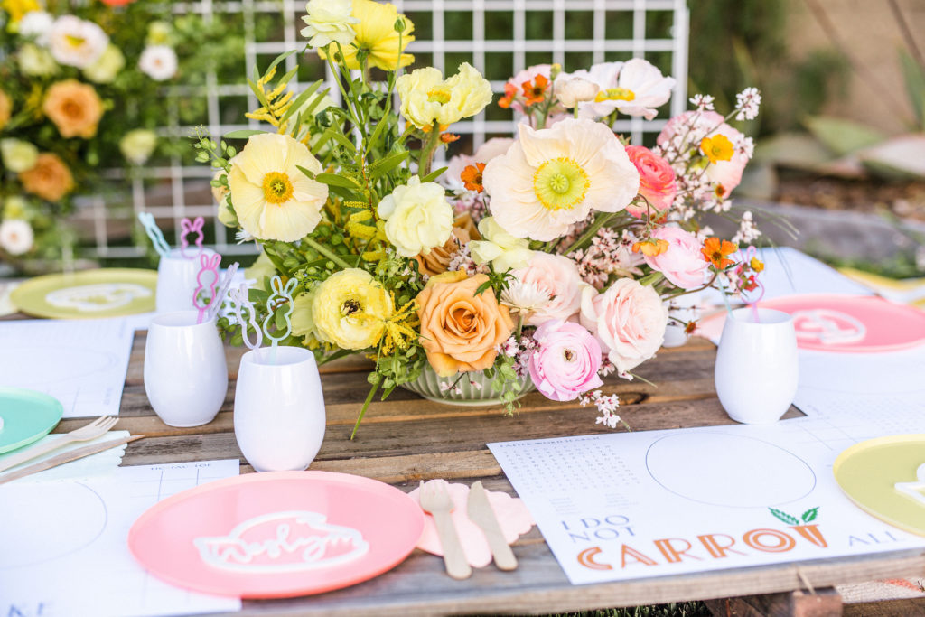 It was fun doing three kid’s Easter shoots/parties this year… Some may say I’m crazy, I don’t deny that, haha! But it’s so cool to see how different they each were! One a bit soft and ethereal, one preppy and cute, and this one modern and colorful! Sometimes I do way too much, but then it’s worth it when I see all the amazing photos! Plus with this shoot I got to work with a few new vendors who I’ve admired for some time now!! One being Krista from Not Just In Novels who did these amazing floral arrangements!! She is oh so talented and I’m very excited to work with her more!!