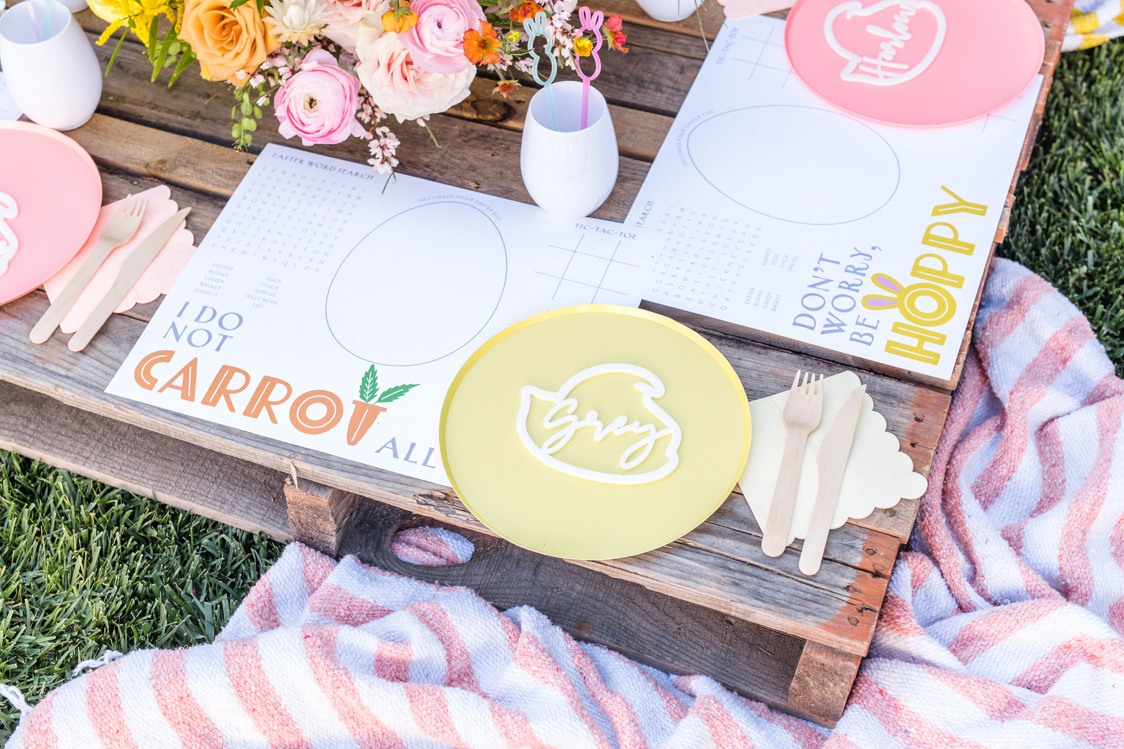 Did you notice the cute placemats by River & Bridge?! I hope you did, because they are amazing! And guess?! At the bottom of this post you can download them and print them yourself! I think they’re the perfect addition to the kid’s table this Easter – just add some crayons and you got them busy for a bit!! Plus they add some color and fun to the table! You can thank us later…