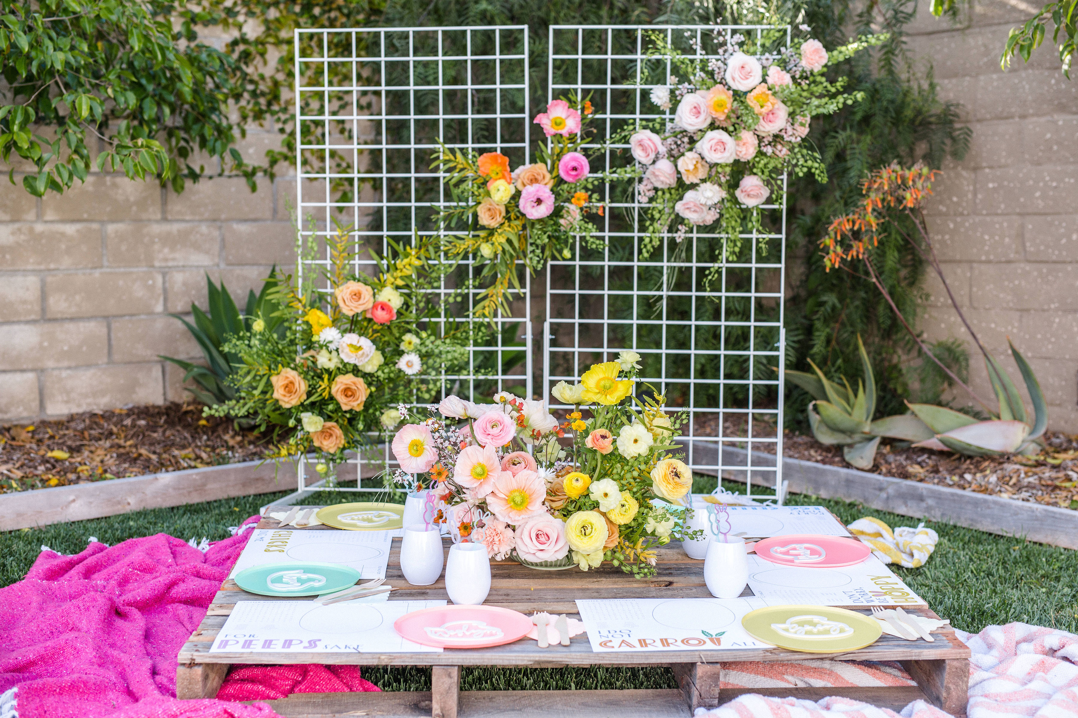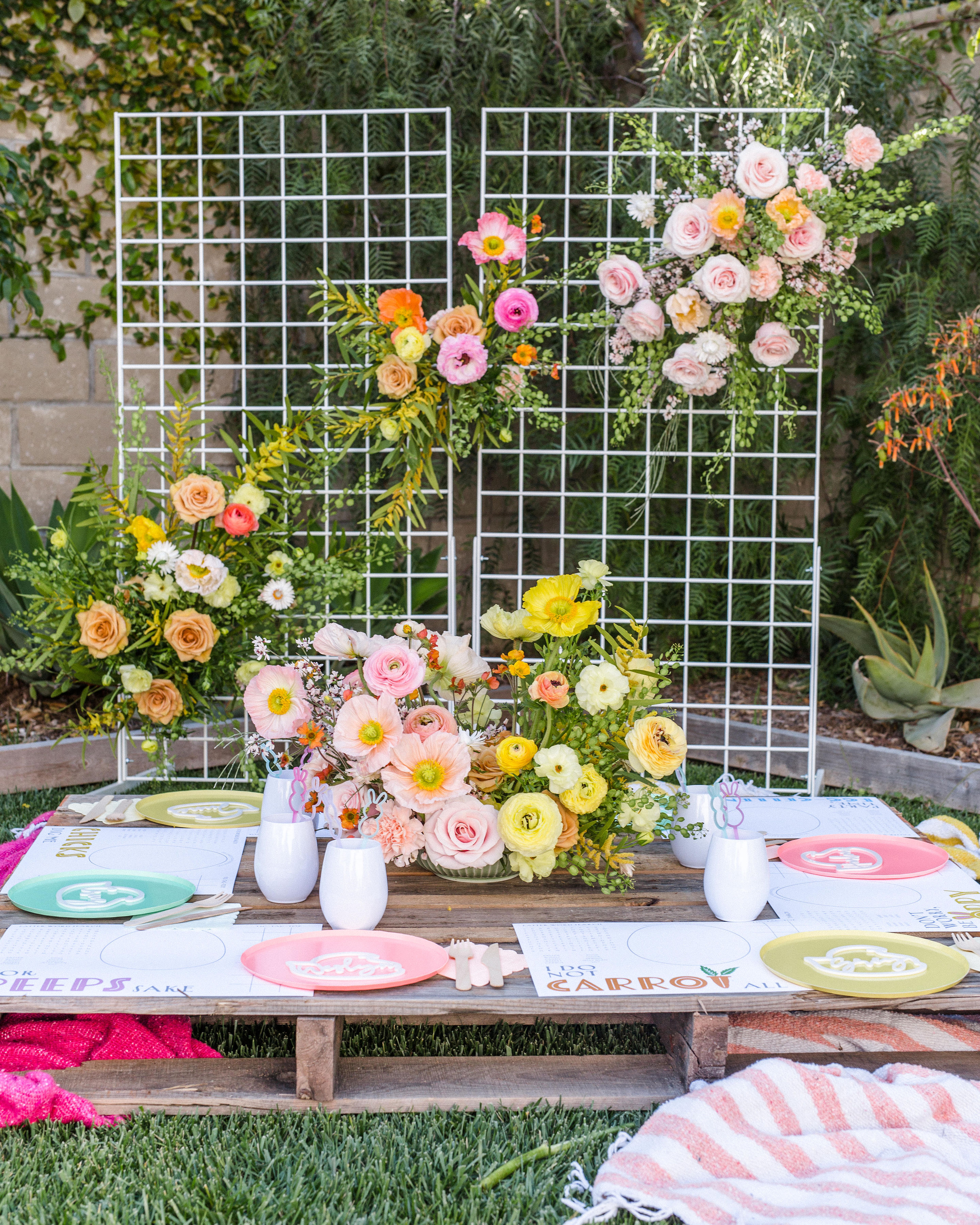I love all of the Spring colors and they give you all the reason to go all out!! We set up this little party in my backyard complete with the most amazing treats and drinks for the mamas! I even have some surprises on how to recreate this party at home!!