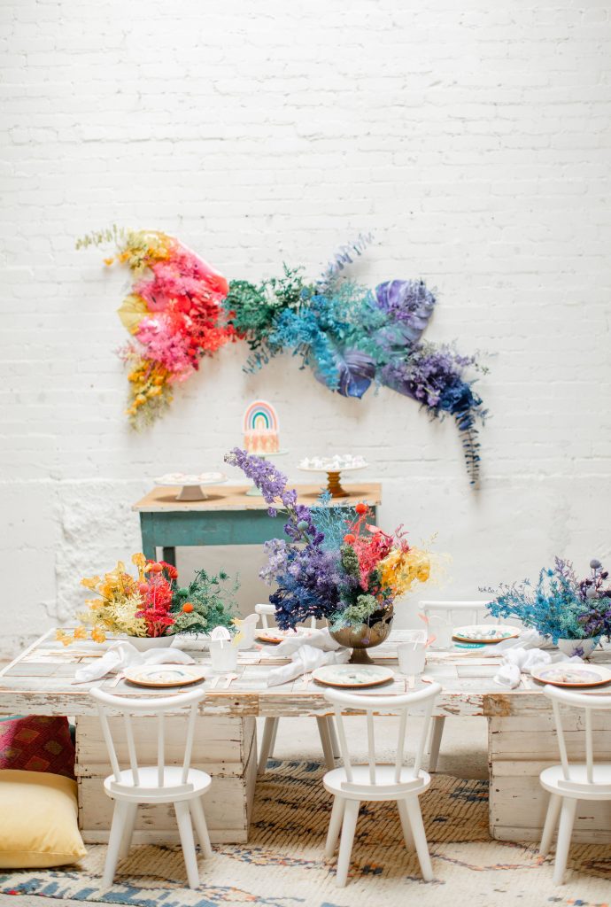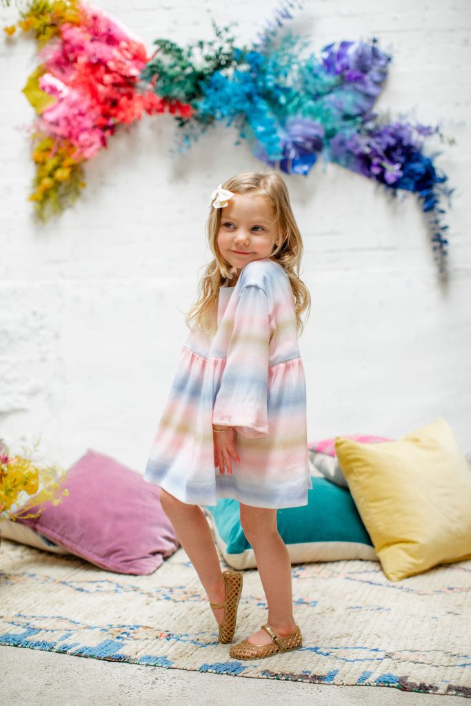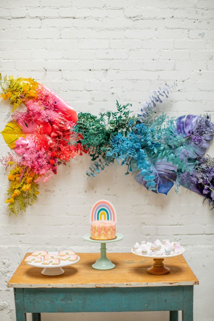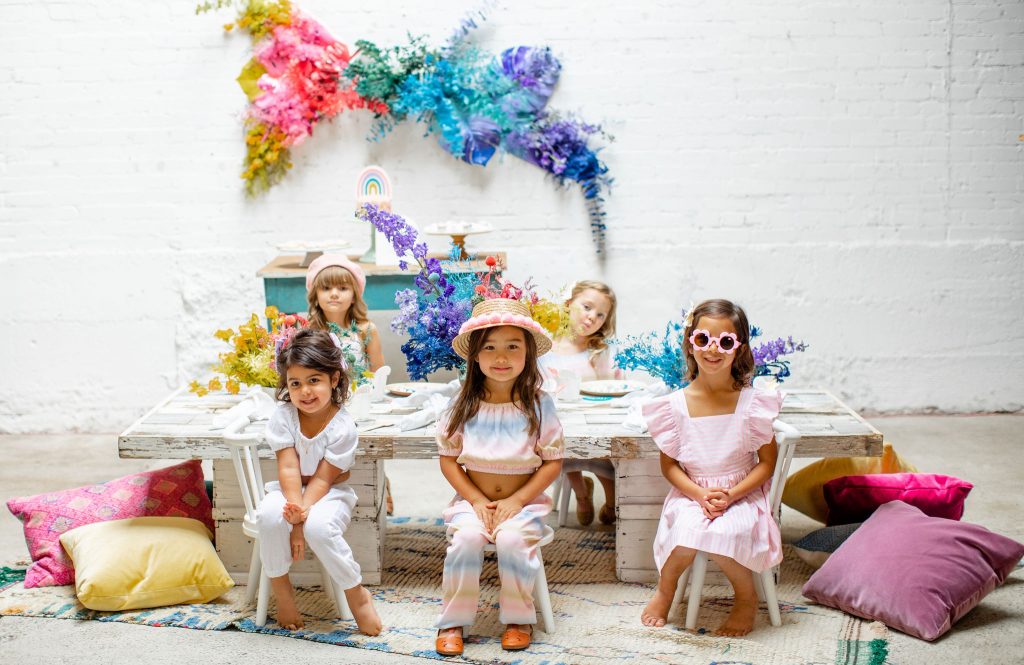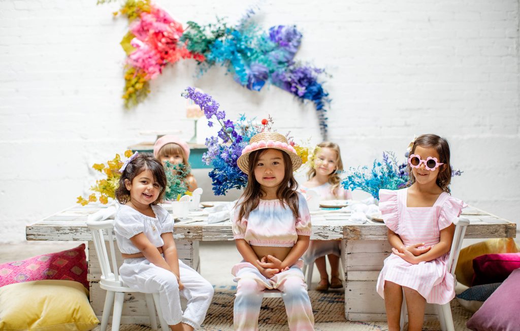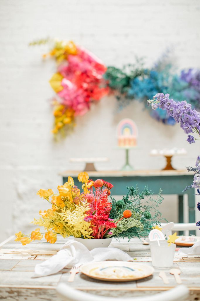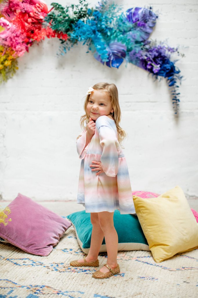 We’ve celebrated women a lot this past week, now it’s time to celebrate our minis!!! The little ladies need some parties too, and this one is perfect for Spring or a little rainbow version of St. Patrick’s Day! I always love a good rainbow-themed party, we did a few last year here, here, and here! But this one comes with more vibrant tones which I love. Plus, I can’t get enough of that beautiful wall piece by Sprig & Spring and the adorable outfits from Wild &. Rae. Keep scrolling to see more!!