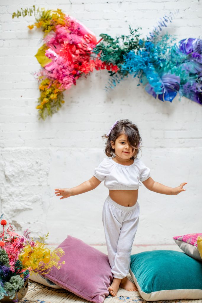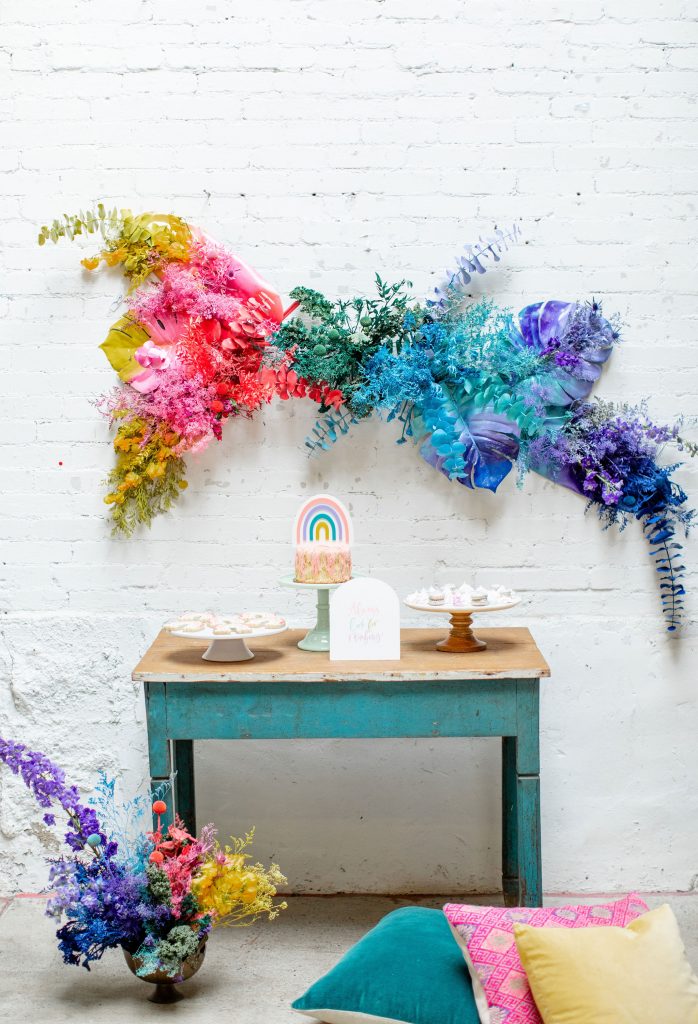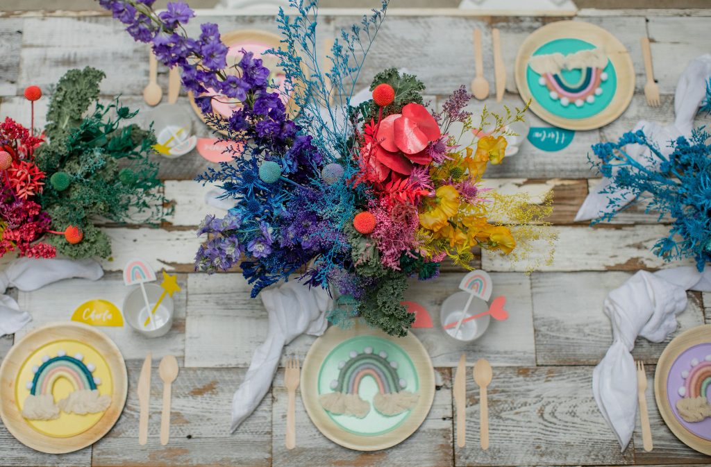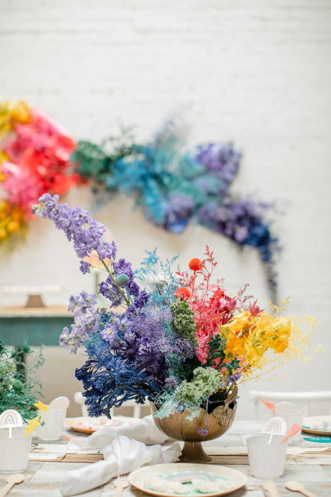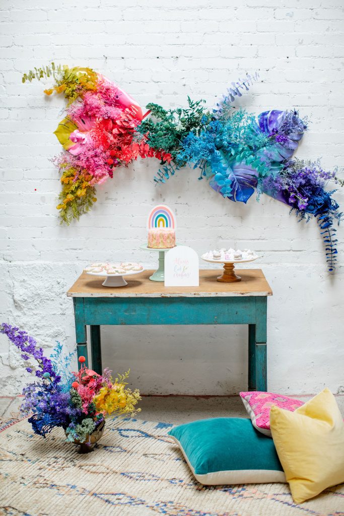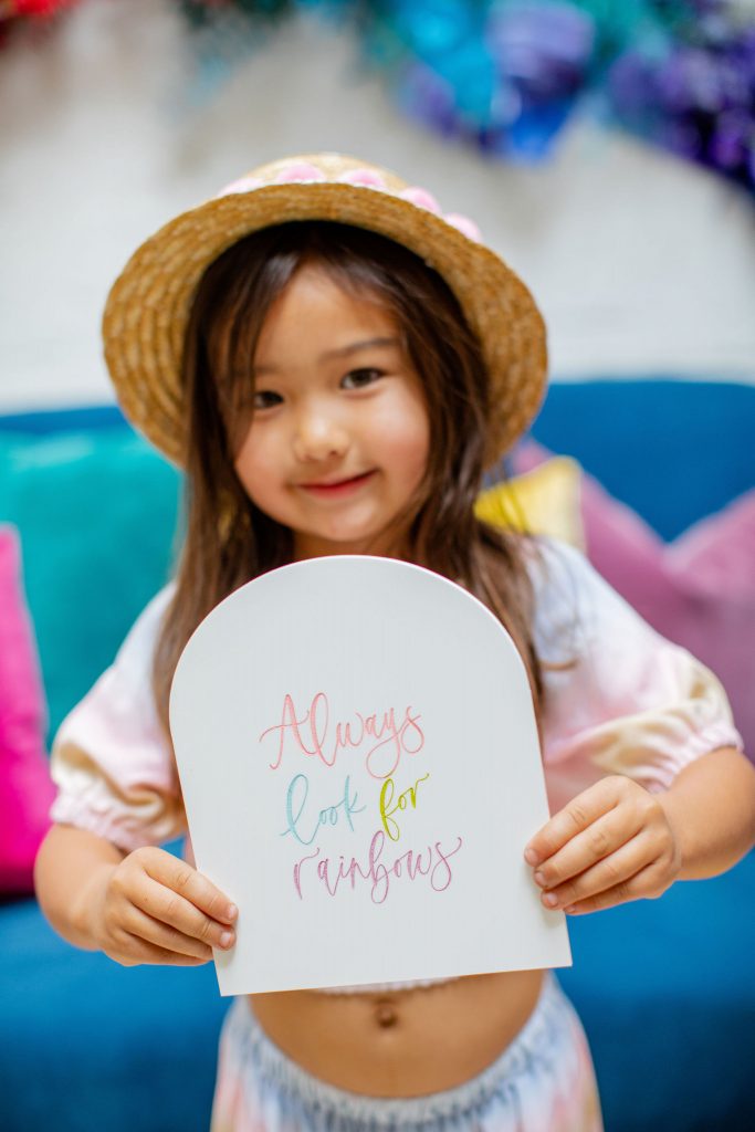 We’ve celebrated women a lot this past week, now it’s time to celebrate our minis!!! The little ladies need some parties too, and this one is perfect for Spring or a little rainbow version of St. Patrick’s Day! I always love a good rainbow-themed party, we did a few last year here, here, and here! But this one comes with more vibrant tones which I love. Plus, I can’t get enough of that beautiful wall piece by Sprig & Spring and the adorable outfits from Wild &. Rae. Keep scrolling to see more!!
