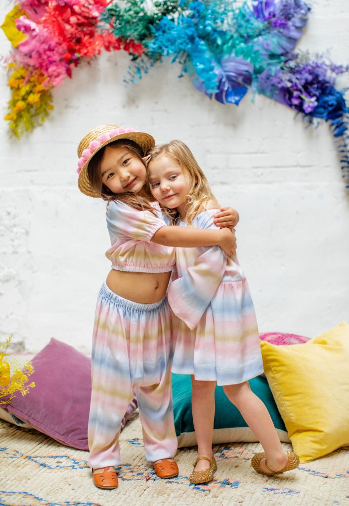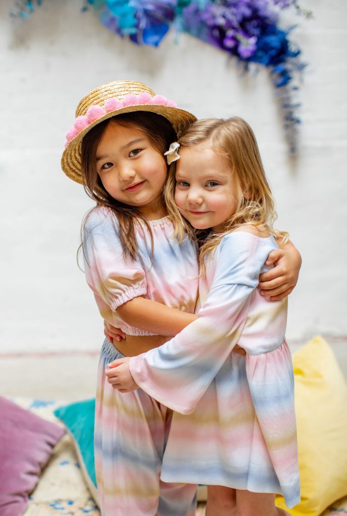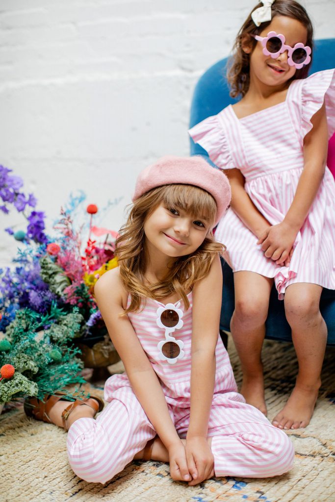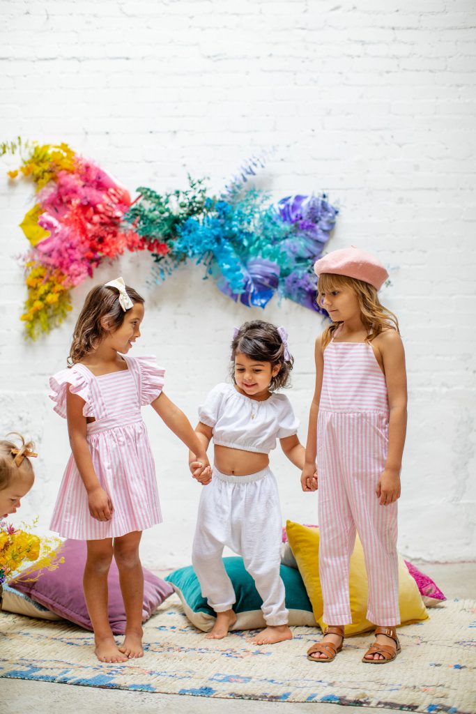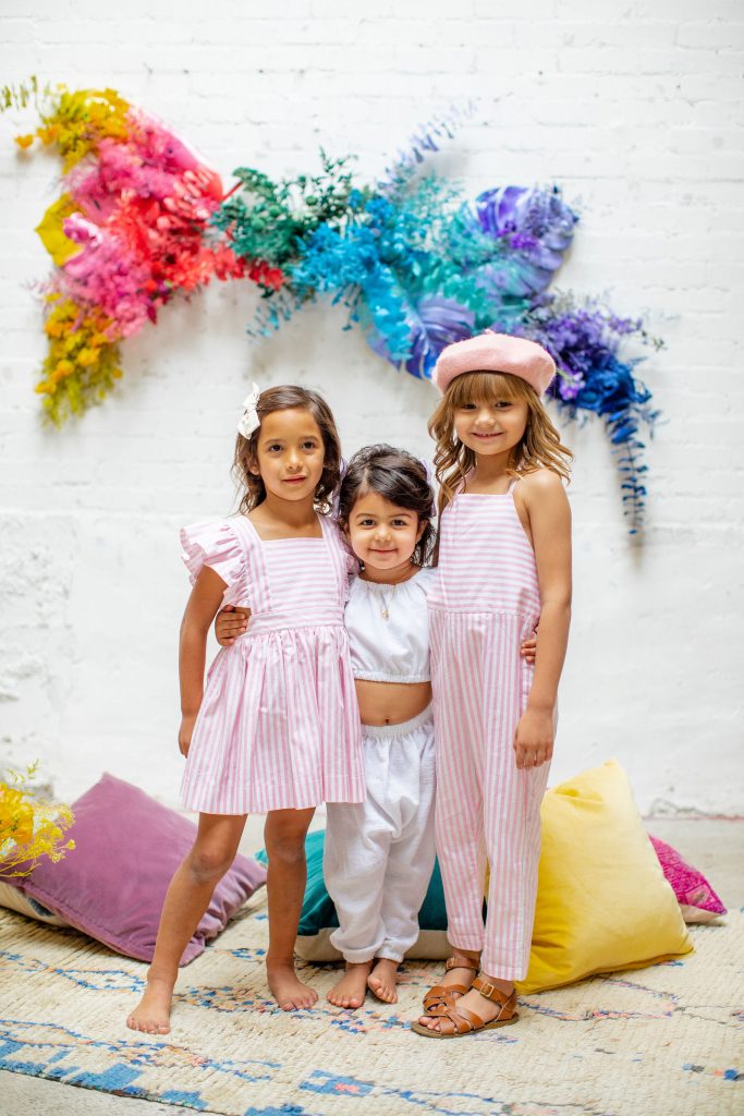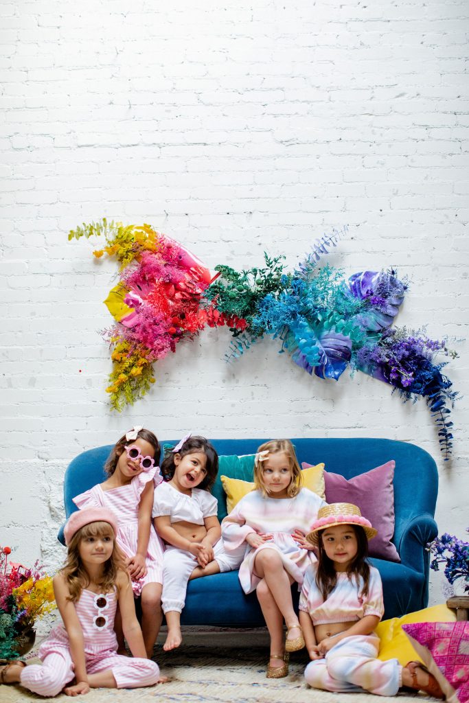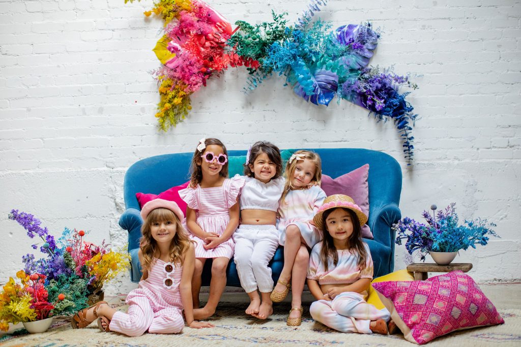 Now it’s time to add in our girls!!!! These little cuties were all friends and got to wear Wild & Rae, the sweetest little local brand down in Orange County. Each piece is handmade and they use such fun fabrics in the most adorable cuts!!