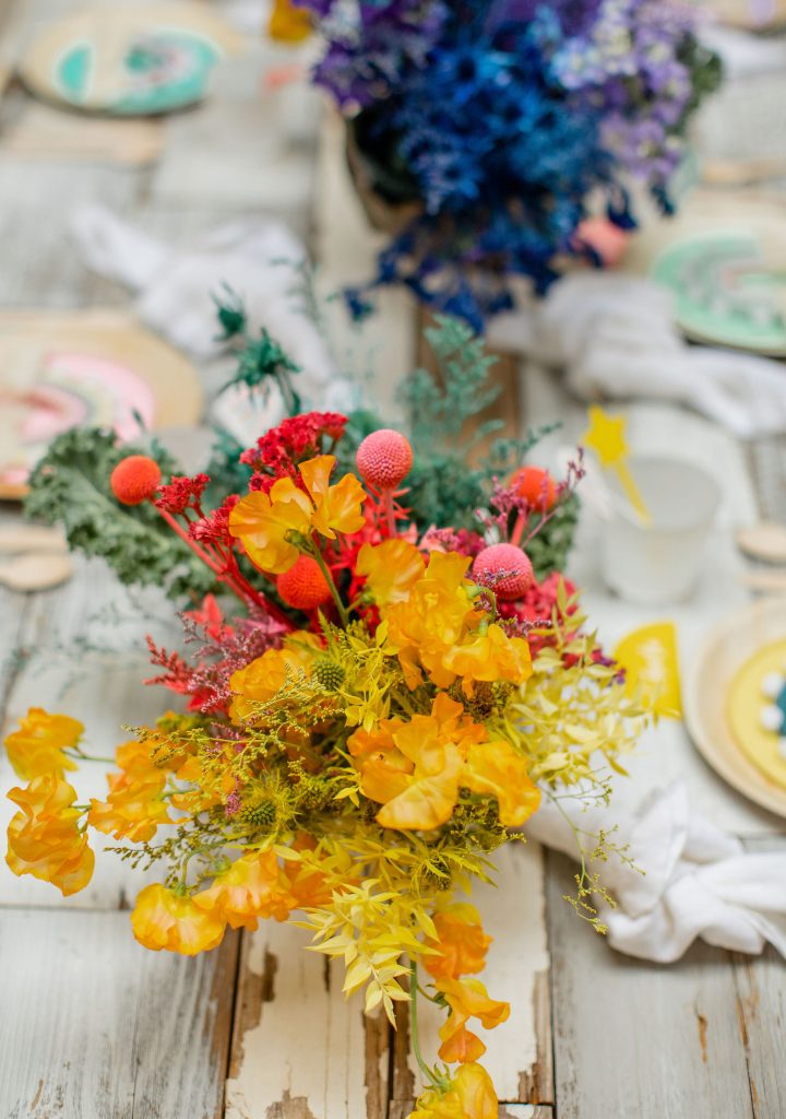 Could this table get any cuter?! As I said, I’m in love with that floral wall piece by Sprig & Spring and the same goes for all of her beautiful arrangements for this shoot. All that color is so eye-catching and pretty!!