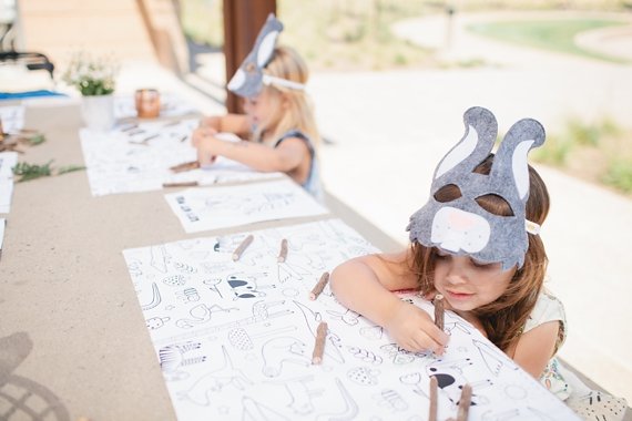 Opposite of Far also has a great party kit with coloring and color in masks for each kid!! I’m telling you, it really is the perfect party in a box!! And we made the seats nice and cushiony for our littles with pillows from our favorite Boho Pillow…