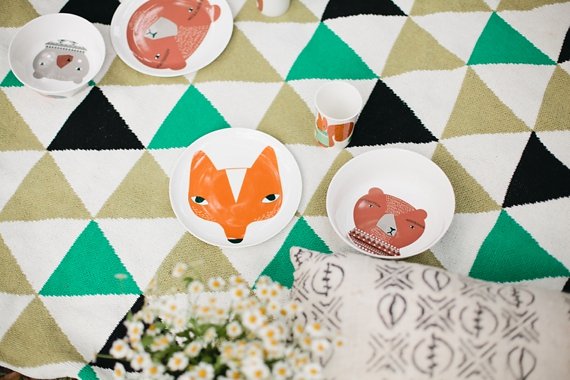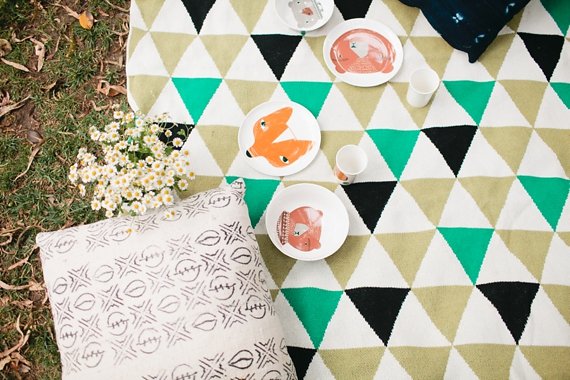 The kiddos got to relax and snack on blankets by Happy Habitat with Boho Pillows and the best little critter plates by Donna Wilson from Artsy Modern…