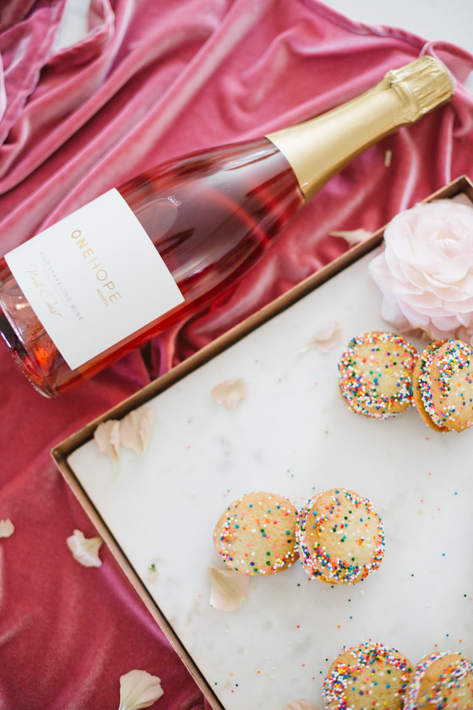 Obviously Valentine’s Day is a celebration, so we definitely need something sparkly to sip!  How perfect is it to pair a Rosé Sparkling Wine with Funfetti Whoopie Pies?!  After all, that’s a party right there!  These are also a great kiddo pleaser… My advice is to let them join in on the fun then put them to bed and have your own celebration… Bow Chicka Bow Wow!
