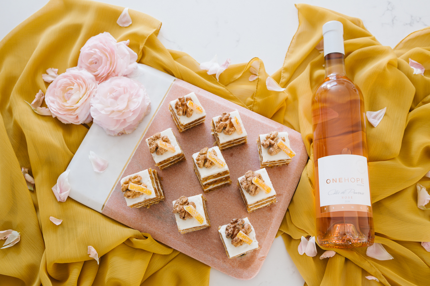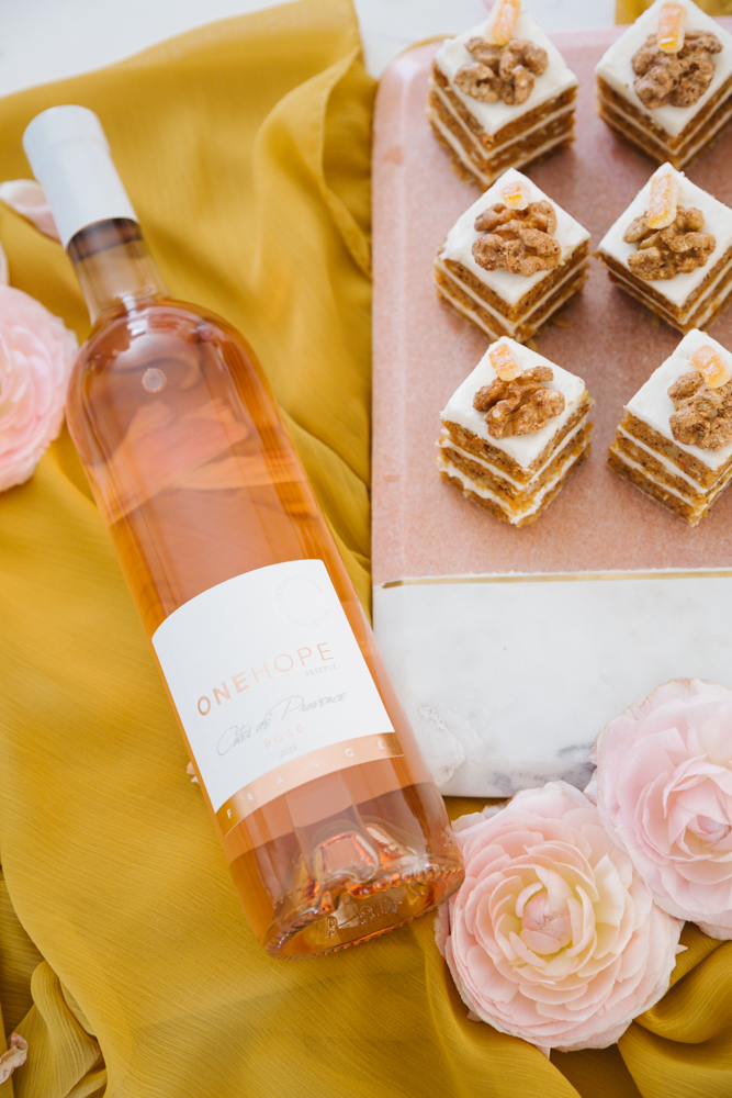 I happened to shoot this post on my Dad’s birthday… And he happens to LOVE carrot cake and coconut… So this next one couldn’t have been more perfect!  Yep, Colette’s paired this delicious Rosé with their Petite Carrot & Coconut Cakes… My dad’s dreams were made and I’m still the favorite daughter!!  Just kidding Janna…