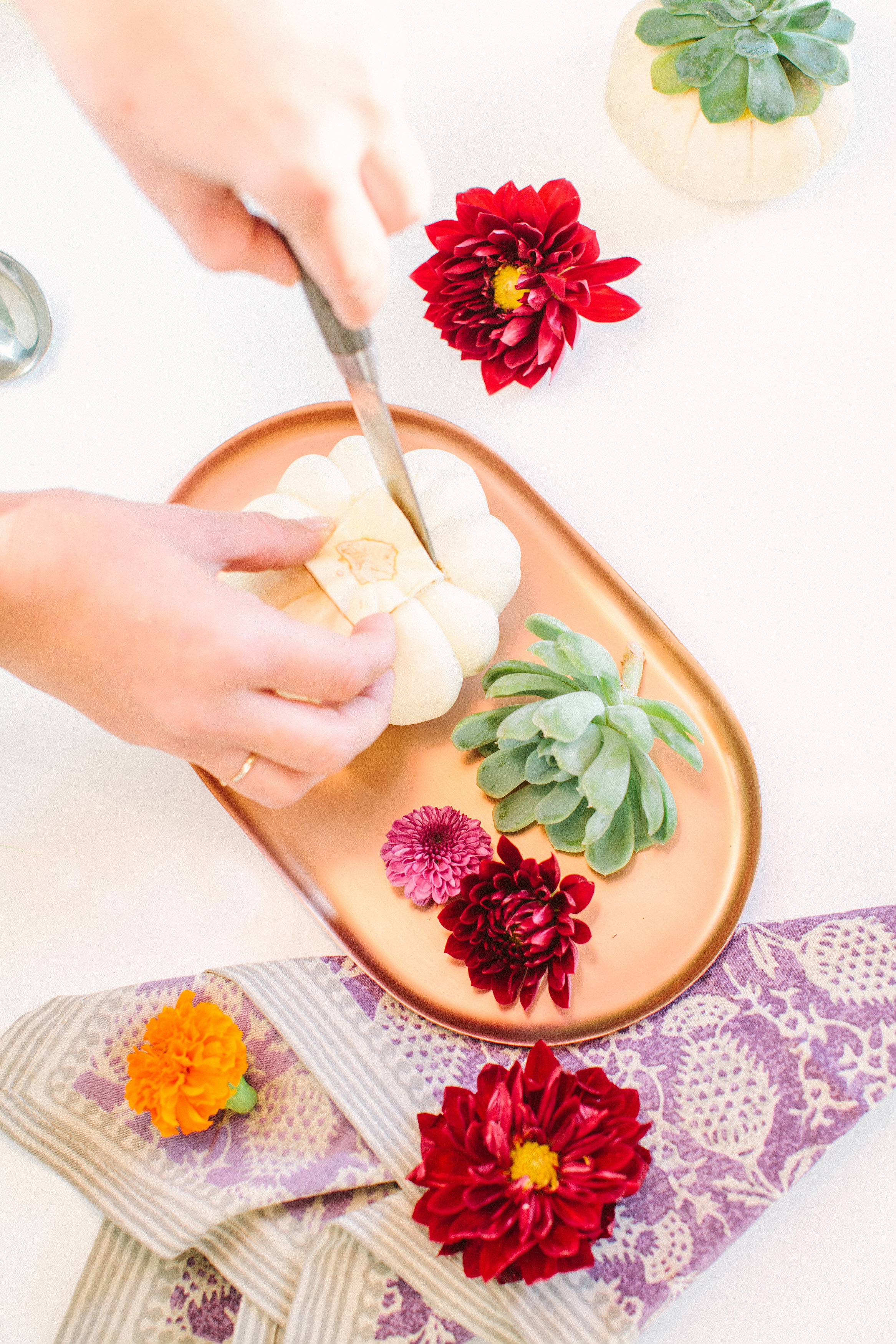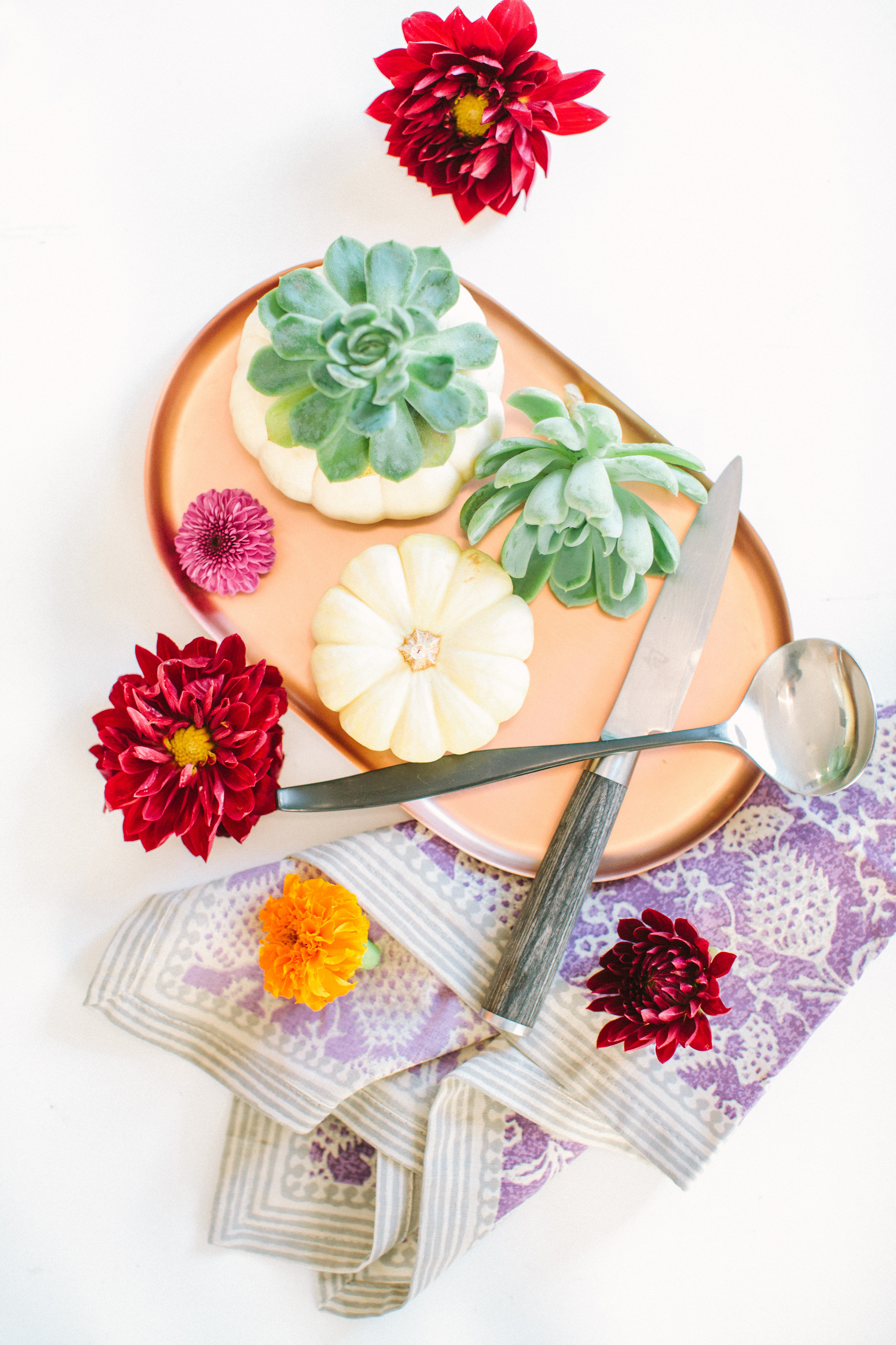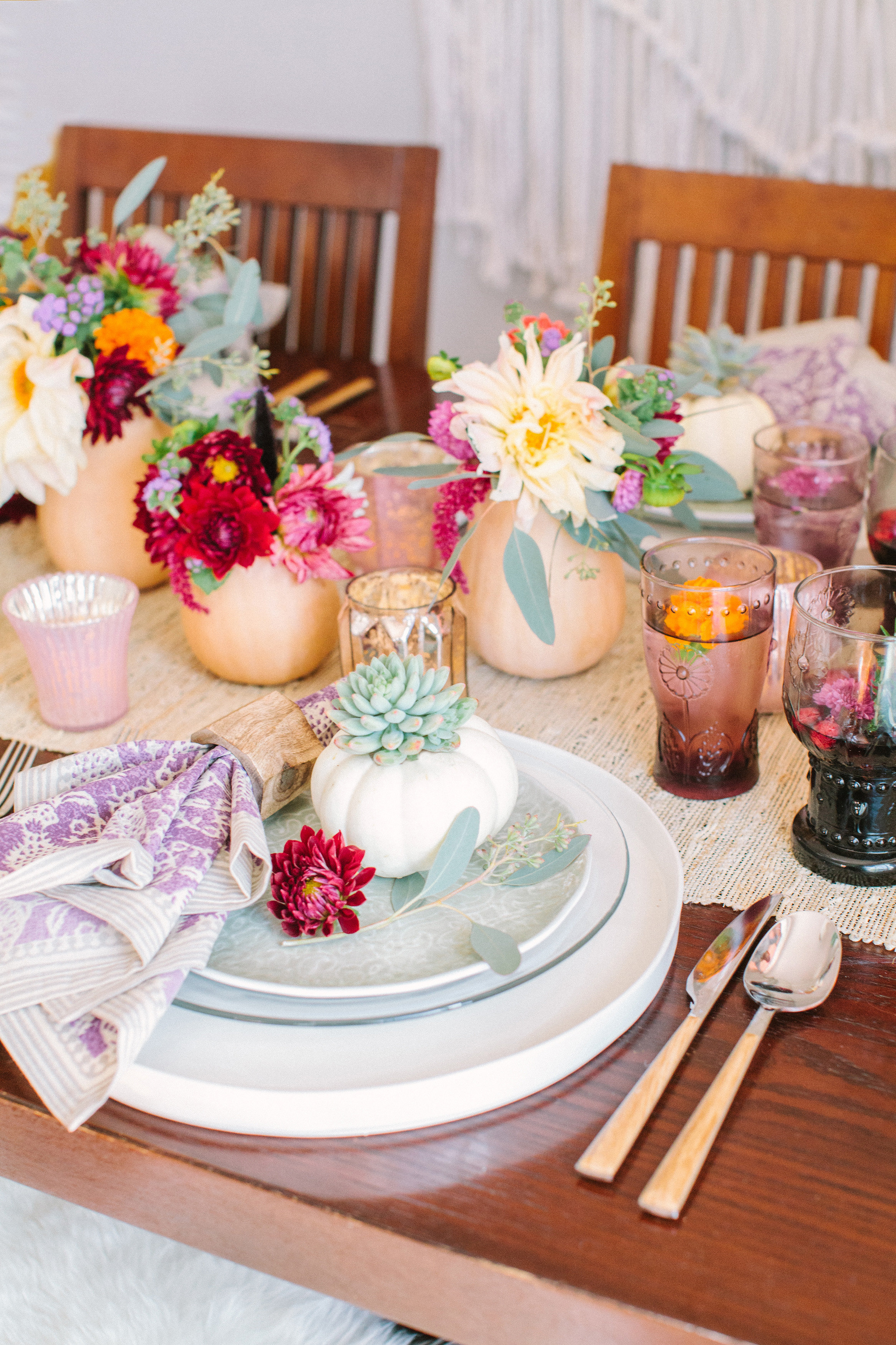 A fall DIY that is sure to be loved by everyone. Not only is it easy to do but its a pretty modern twist on a classic idea! You can be creative as you want! We went with a simple planter for our tablescape, but feel free to get a bigger pumpkin and fill it with various types of succulents to achieve a full succulent planter. This would be perfect for centerpiece for your table or decoration piece around your home.