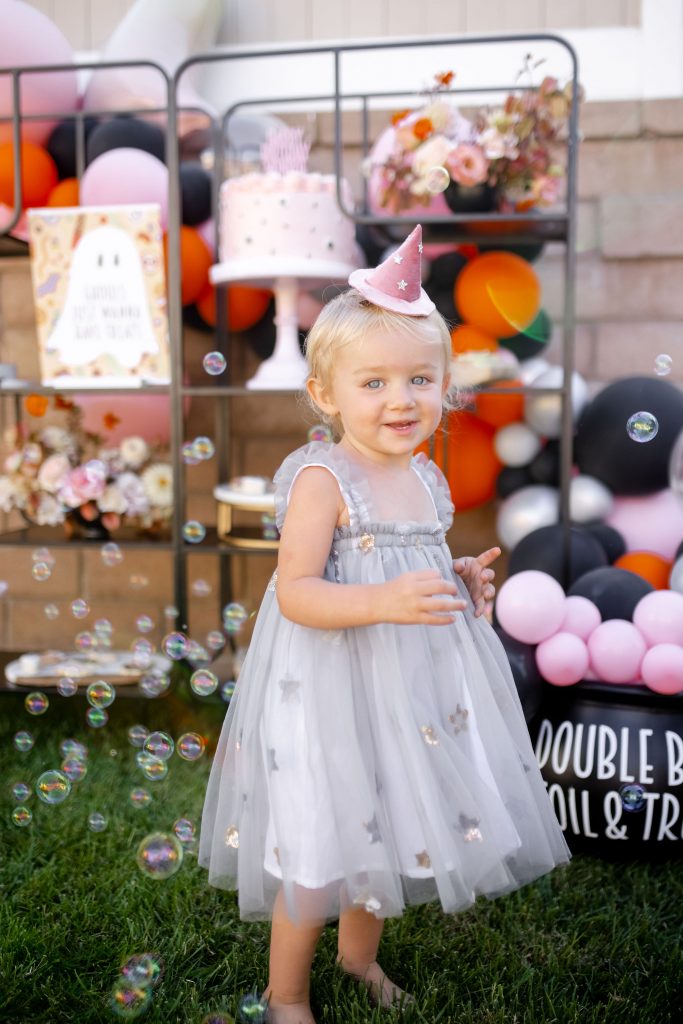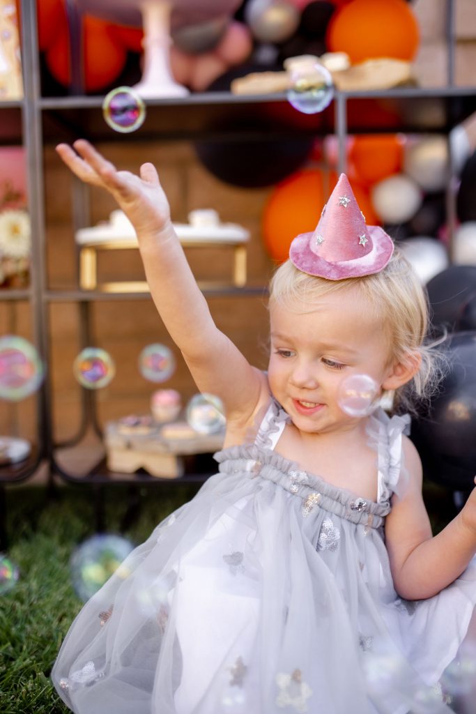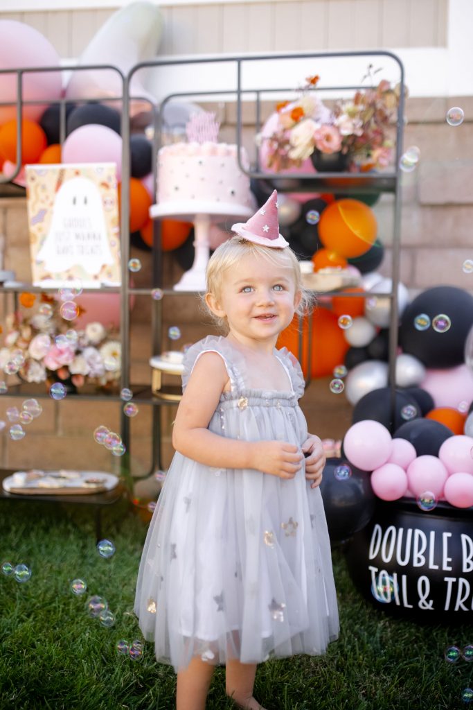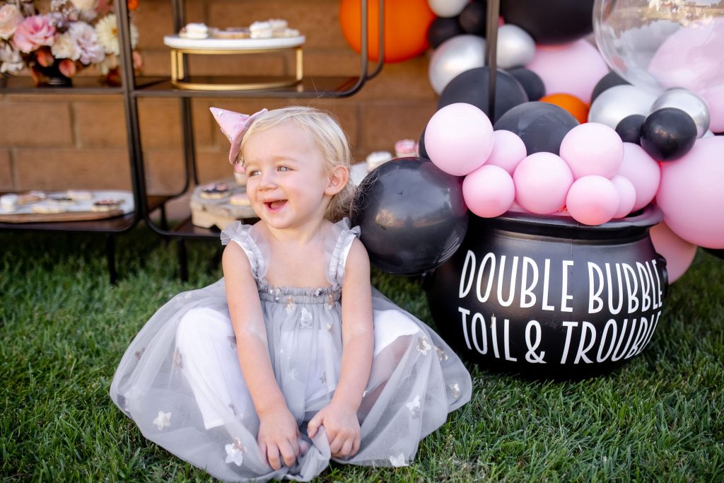 Our little friend Monroe turned two and we were there to help her celebrate! I can’t believe it’s been a year since we celebrated that little cupcake’s 1st birthday! As the daughter of one of our favorite photographers, Corrie Lynn Photo, we knew we had to make it special. This year’s theme was still based on Halloween since her birthday is so close to it, and since she was two it was Double, Bubble Toil & Trouble! We had bubbles – for kids and adults, adorable details, and lots more! Check it all out below!!