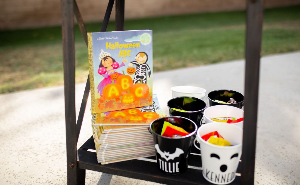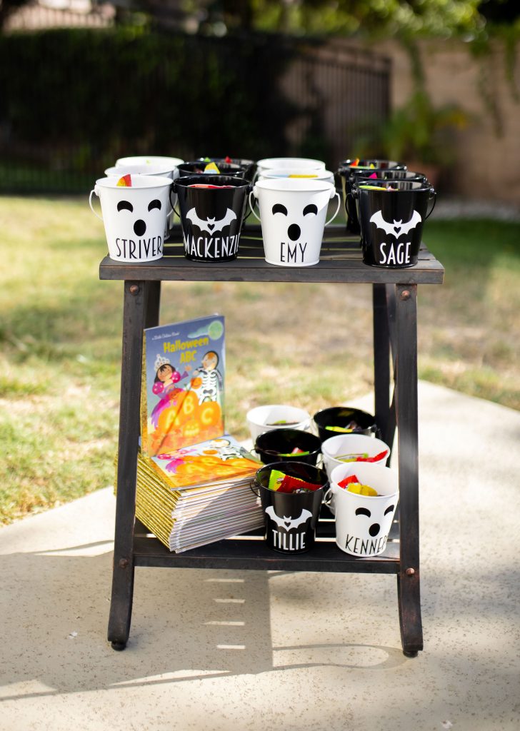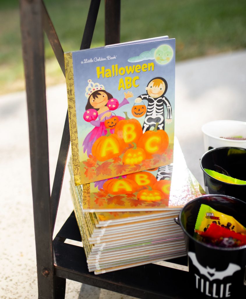 For favors kiddos were treated to personalized mini Halloween candy tins from Poppy Jack Shop and an ABC Halloween book! I love gifting books and I think it’s such a sweet little favor.