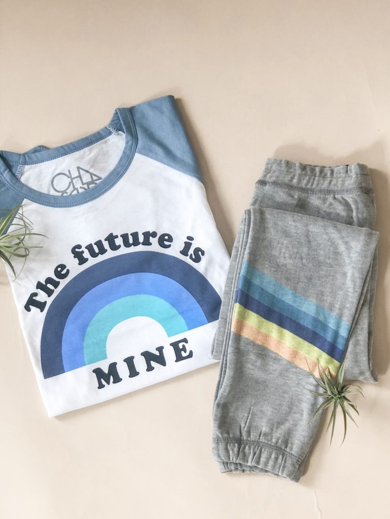 The Chaser brand never disappoints when it comes to trendy and ultra soft sweats and tees, and this outfit will be great for the little man to lounge away in.