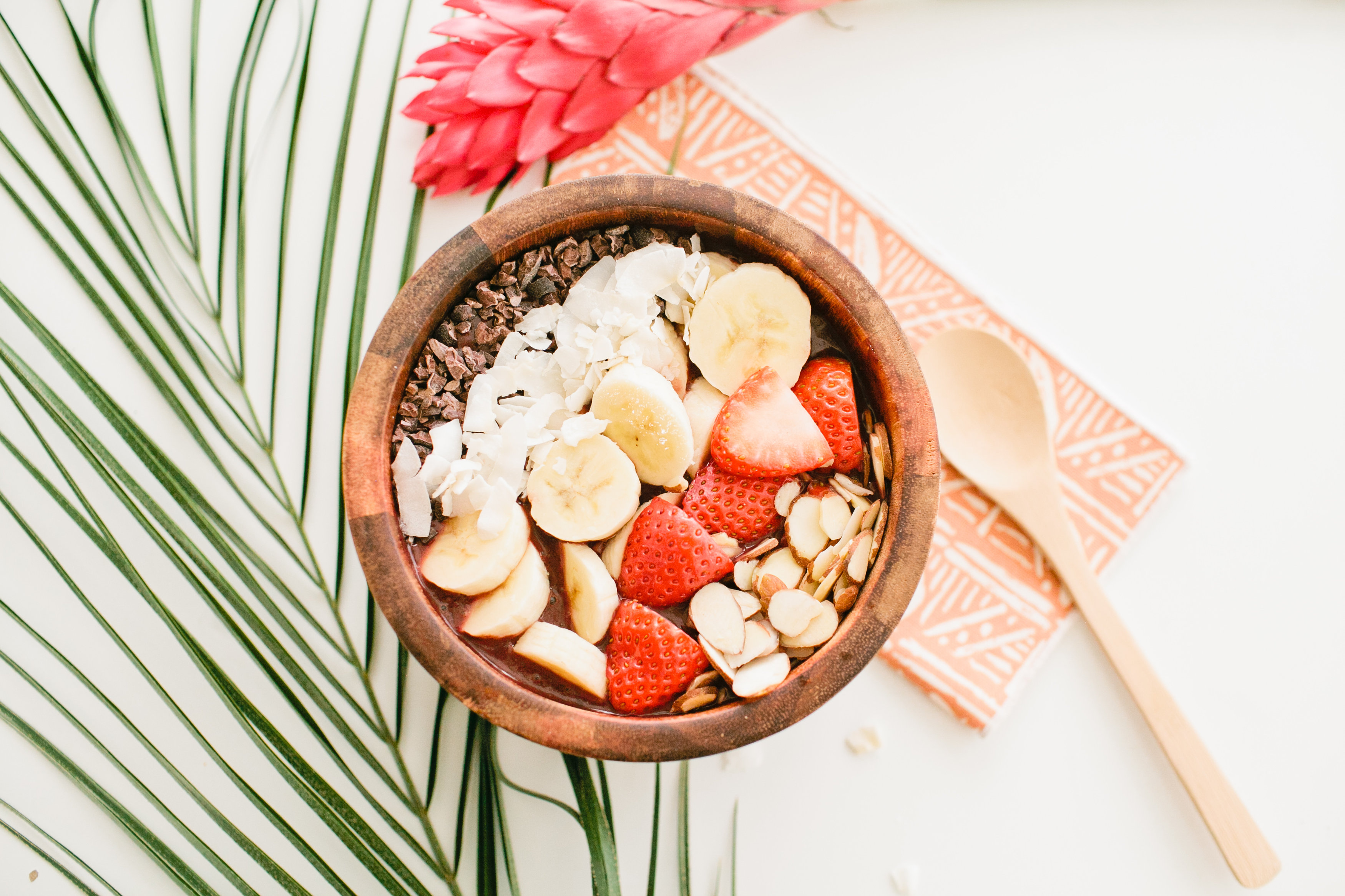 We took a trip down to San Diego a few weeks back to visit our pal Julia, owner of Gunn & Swain and she treated us to all kinds of goodies including this yummy and healthy recipe today! You may have seen her office tour a few days ago or the yummy cocktail she whipped up too! This acai bowl recipe is fresh and yummy, prefect for these Spring days coming up…