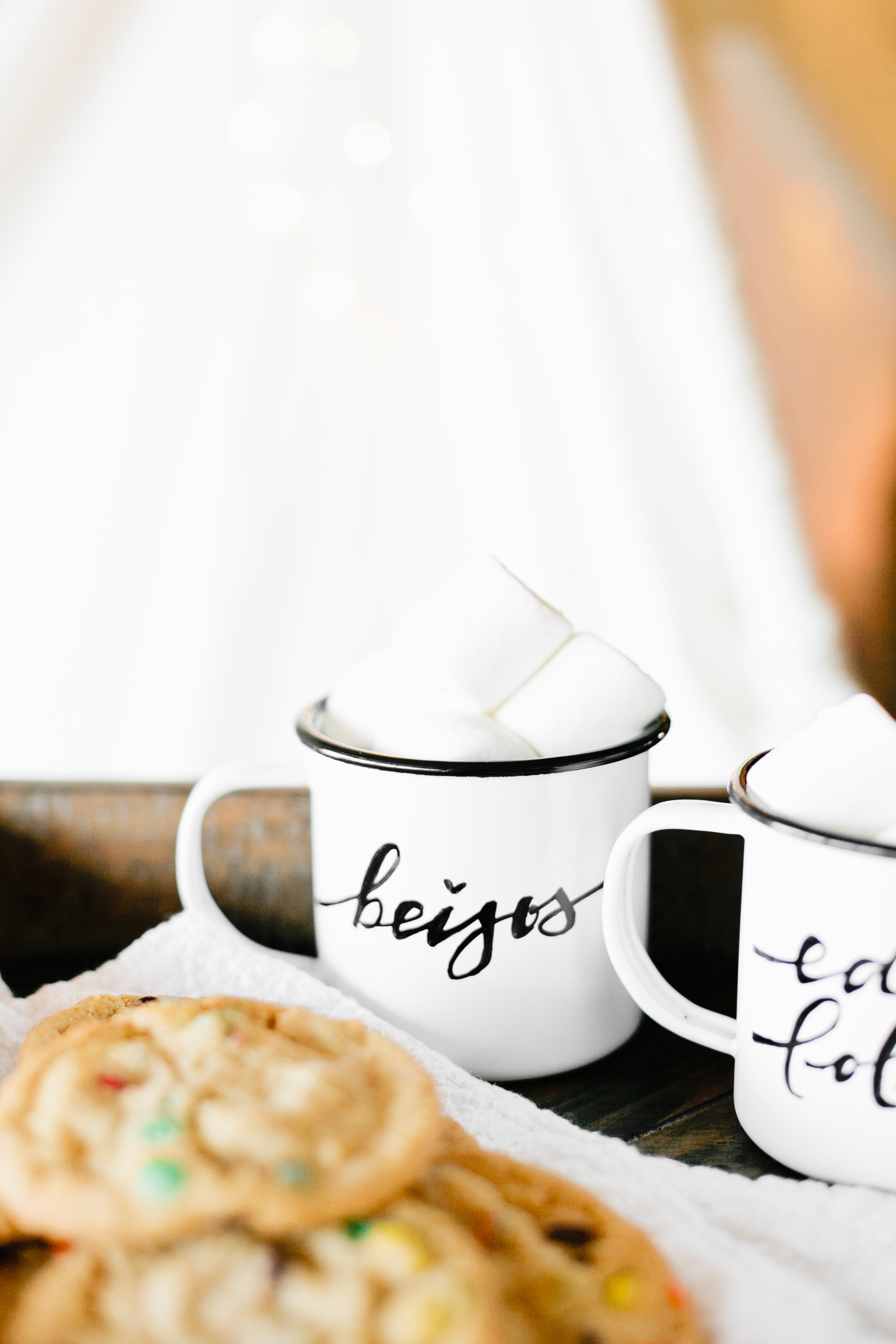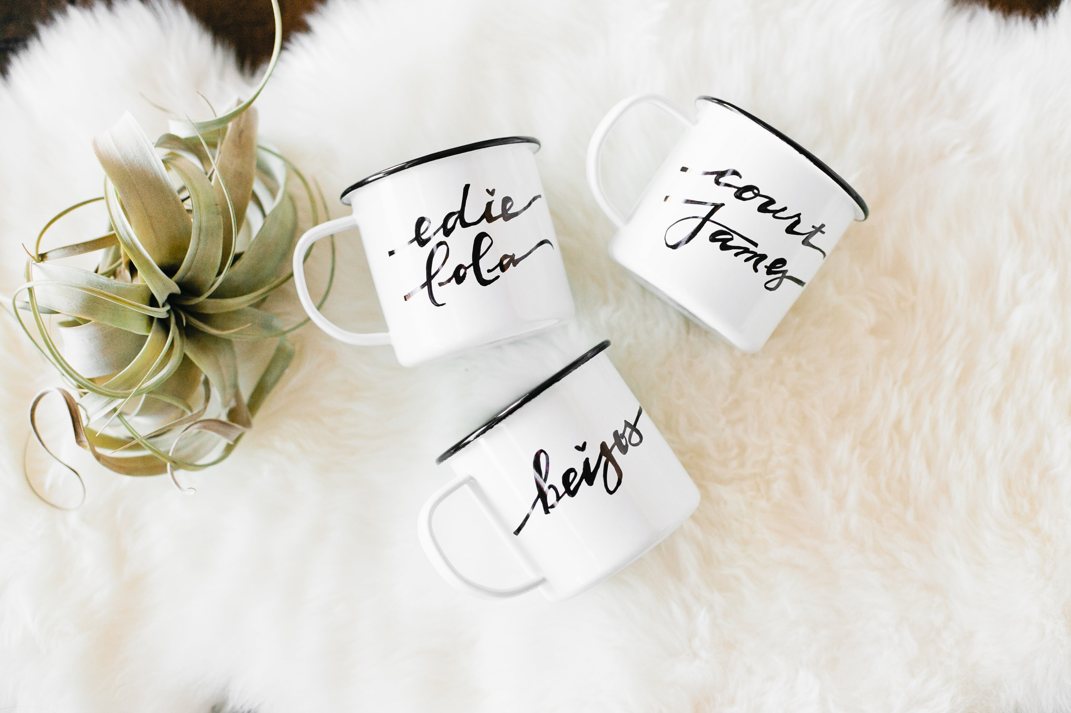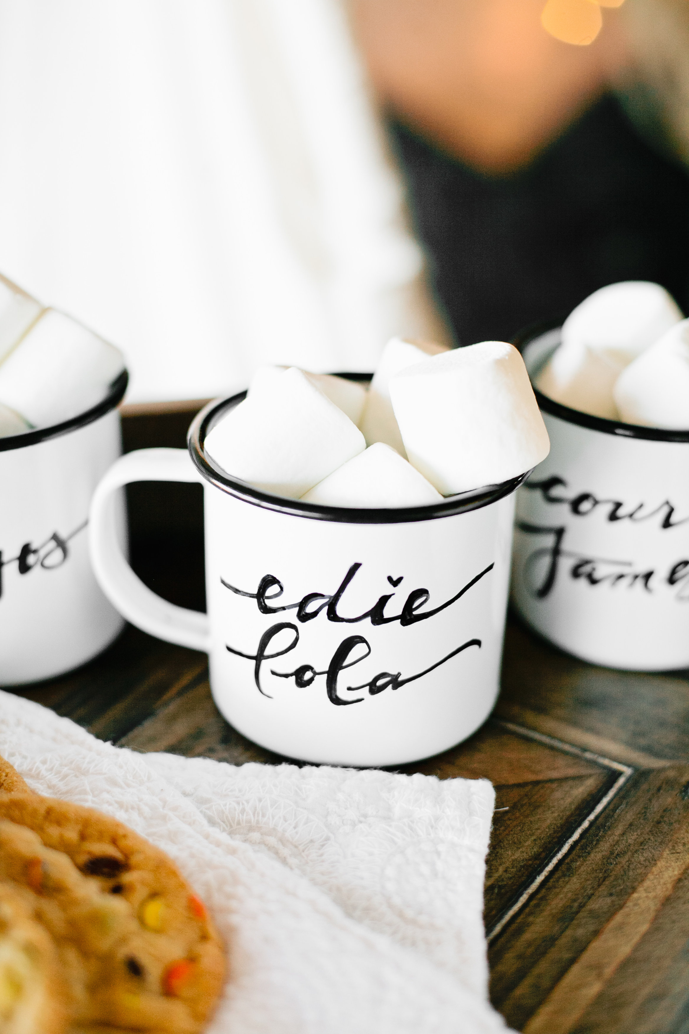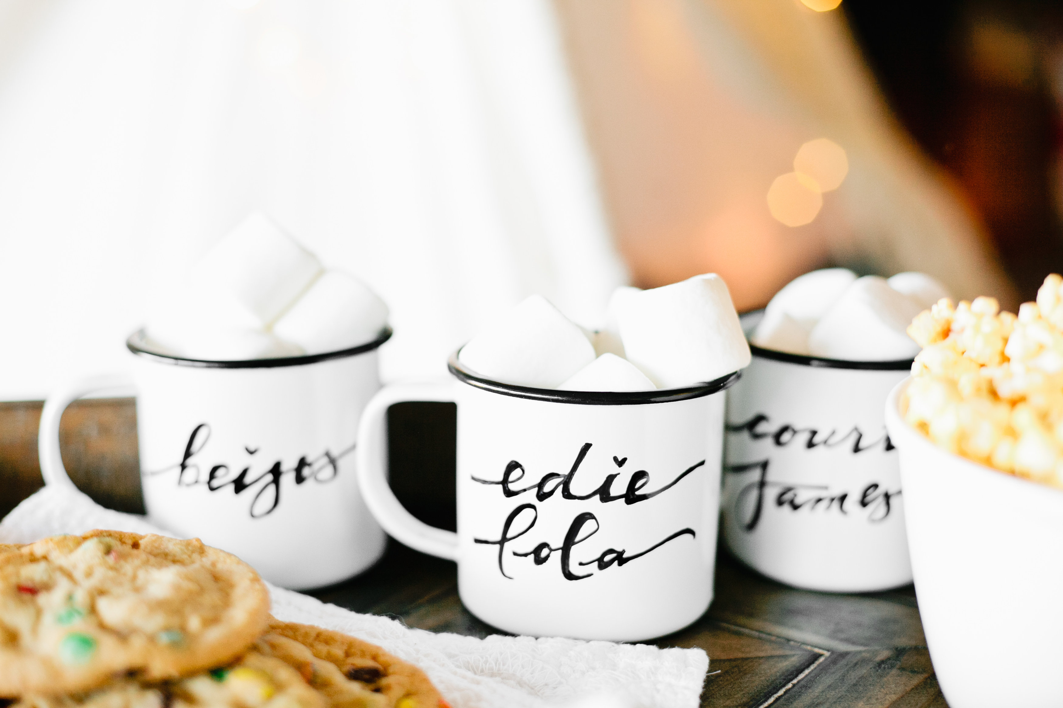This week we are talking about how to stay cozy this winter, and yesterday we posted on how to stay cozy with our littles. We featured some personalized enamelware mugs that we’d love to share with you.  We a little obsessed with enamelware right now, because it’s fun, rustic and you can personalize it for gifting or just for fun.  Here’s  a peek at the finished product…
