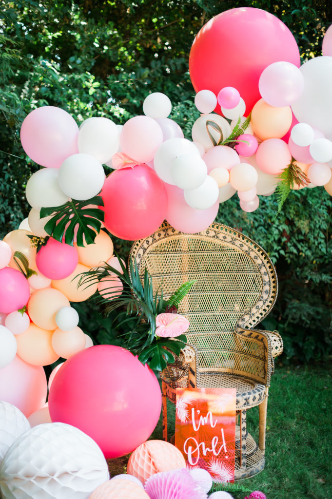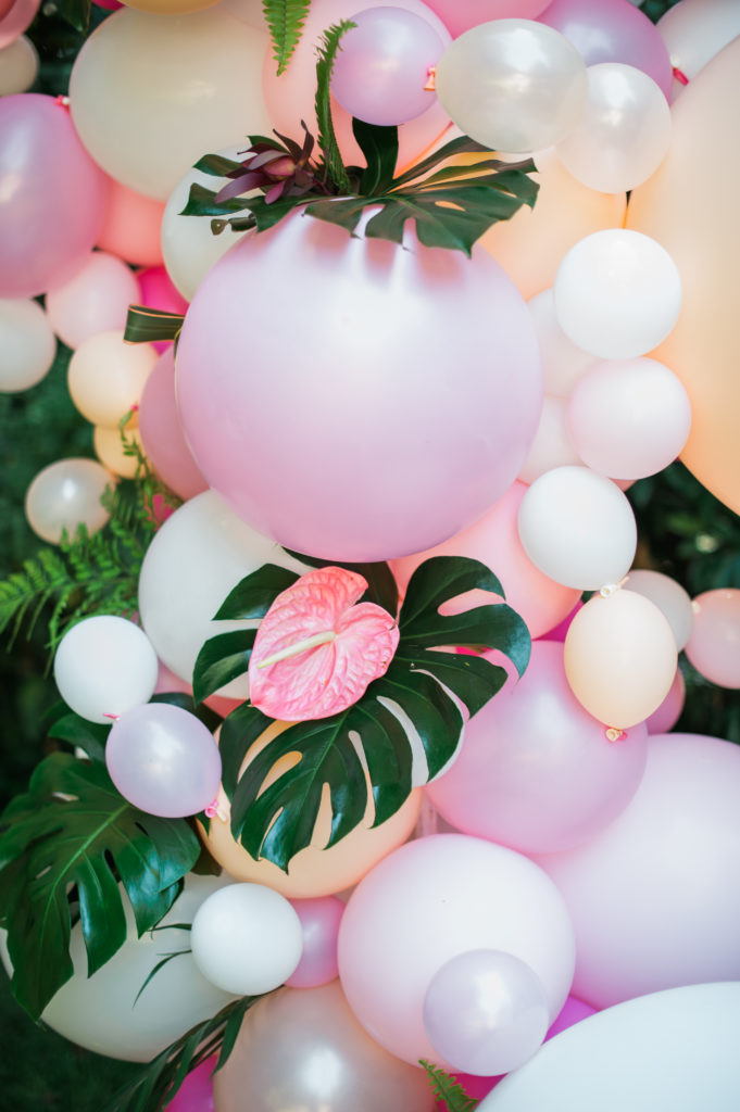 Petite Petal came in and added their magic touch and made that balloon backdrop come to life with adding tropical greenery to it! So cute right?! We think so!
