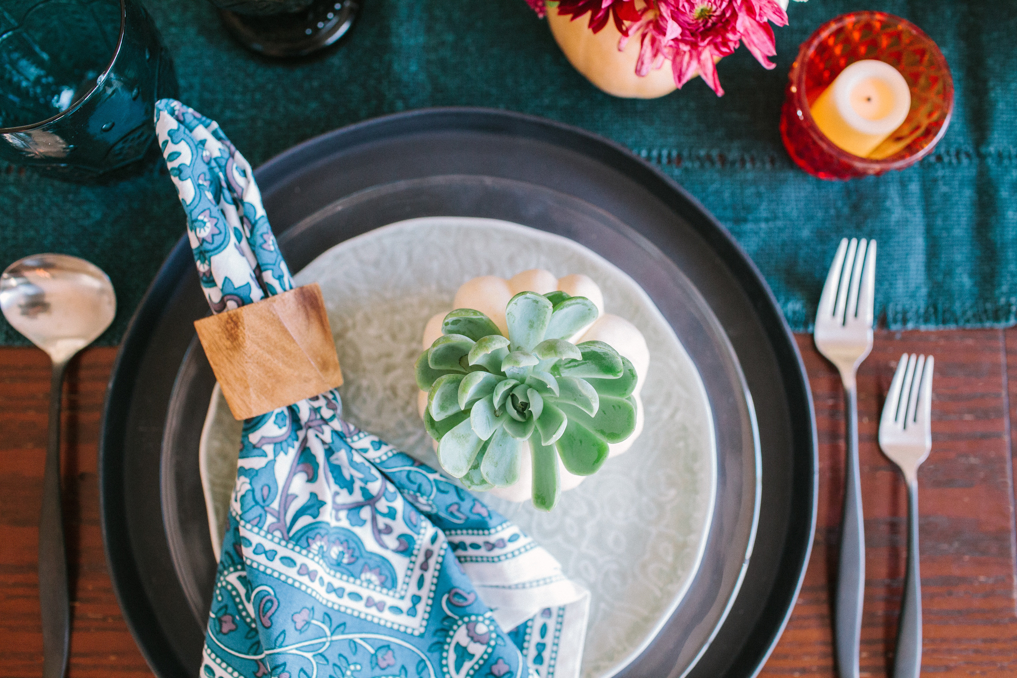 If the dark colors aren’t for you, or you have another dinner party and want a slightly different look… here you go!
