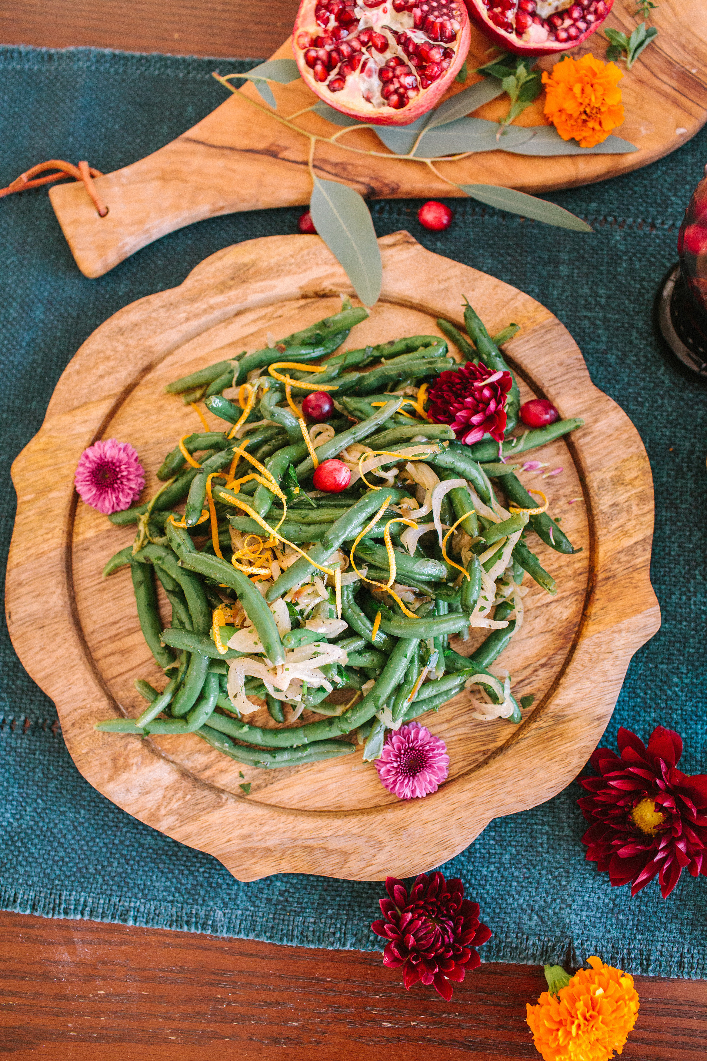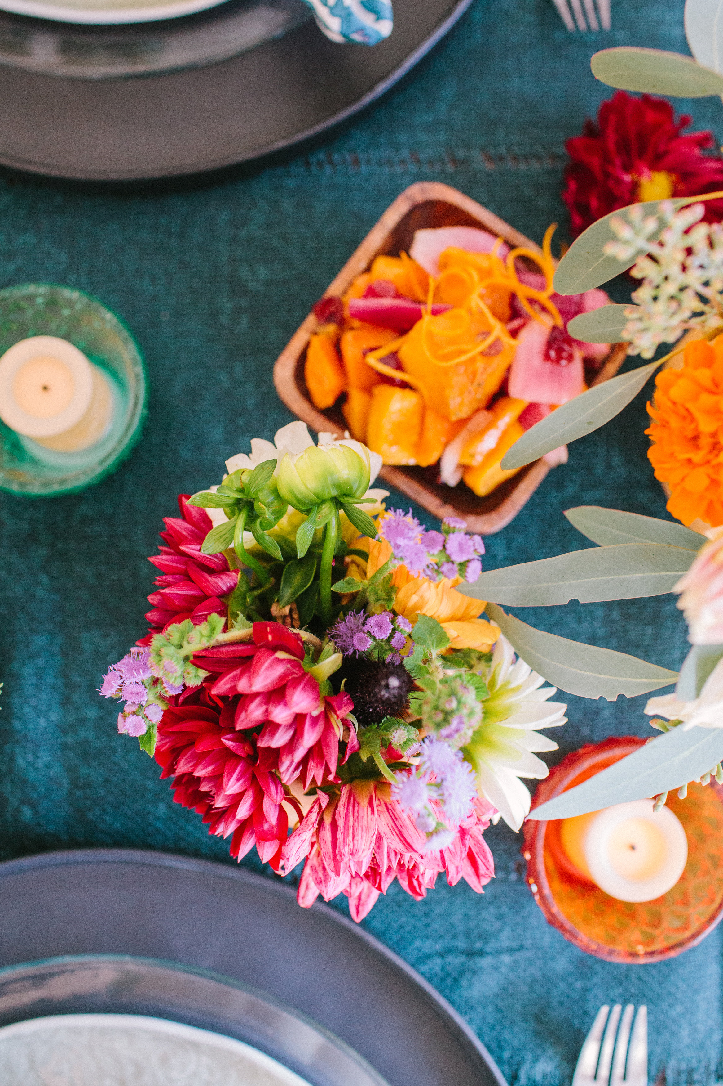 Add your food and pour your wine! I love how the food adds pops of color to the table, so pretty.