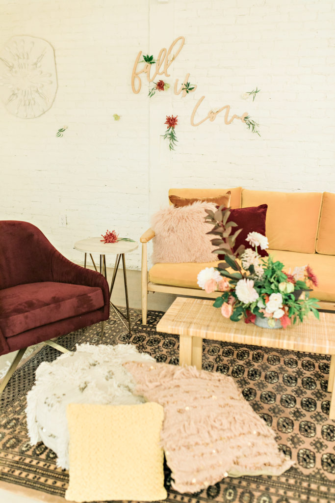 Guests were greeted with delicious cocktails and yummy bites. There was a beautiful lounge set up by Adore Folklore to cozy up in and chat. It was a great way to connect with other vendors during the busy Fall wedding and event season!