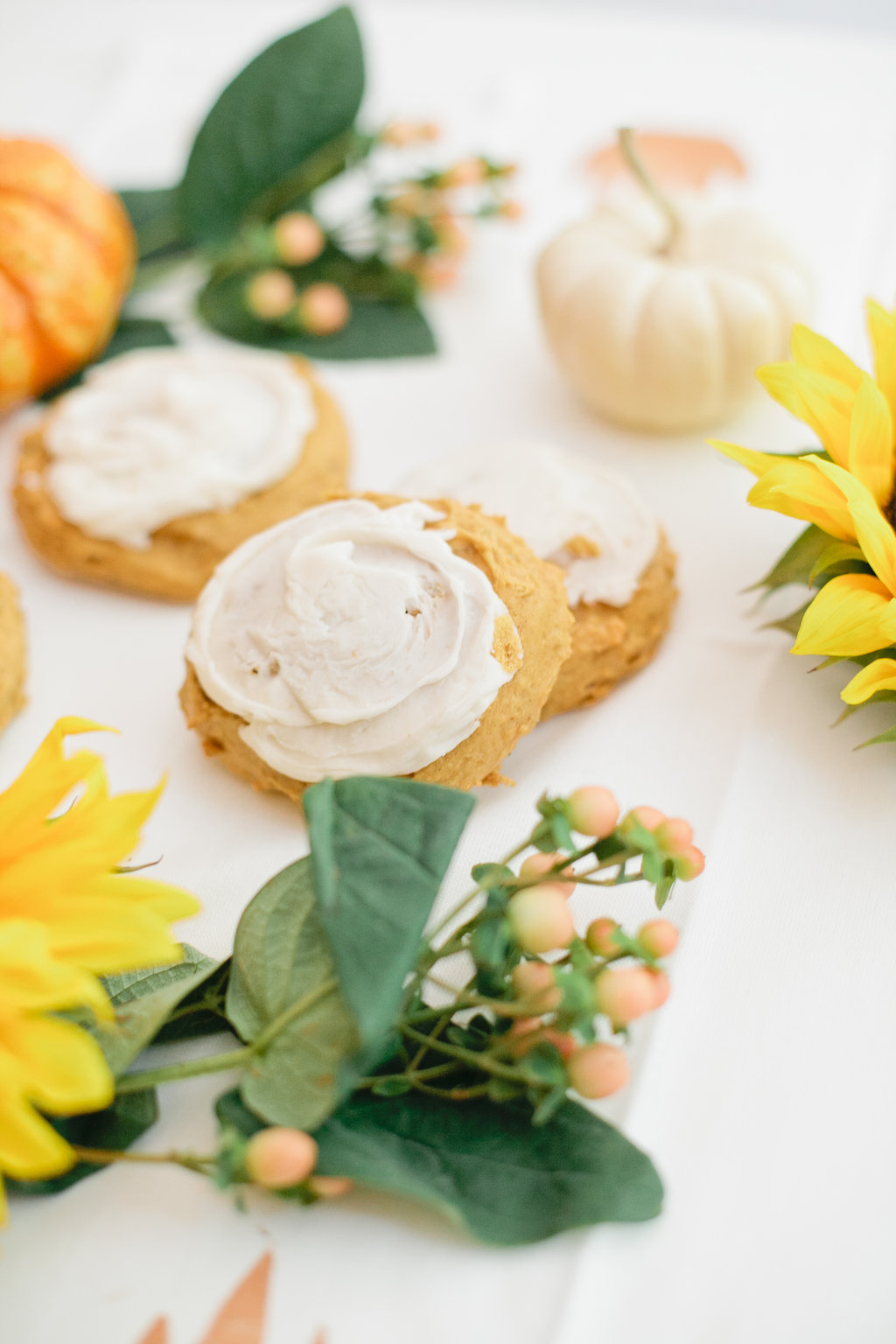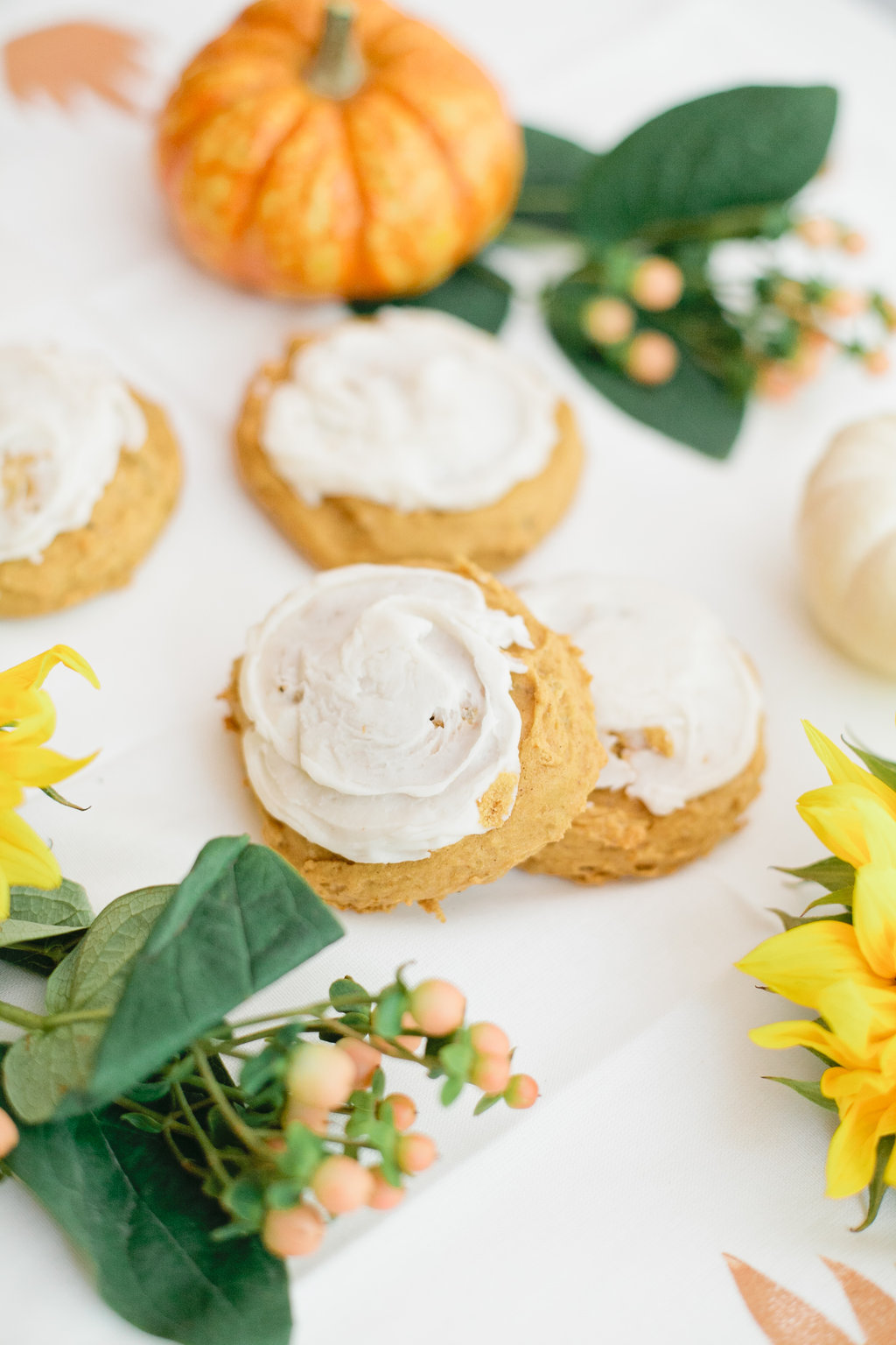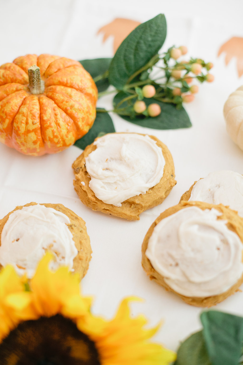 I don’t know about you, but I’m totally the type of person that wants pumpkin everything this time of year. So I’m dying to share this pumpkin cookie recipe with you guys. They are so delish, very soft and moist with a cake like texture. The frosting is just the right added touch, not too sweet, but the right amount of cream to offset the pumpkin. They are really great anytime of year, but an essential this time of year.