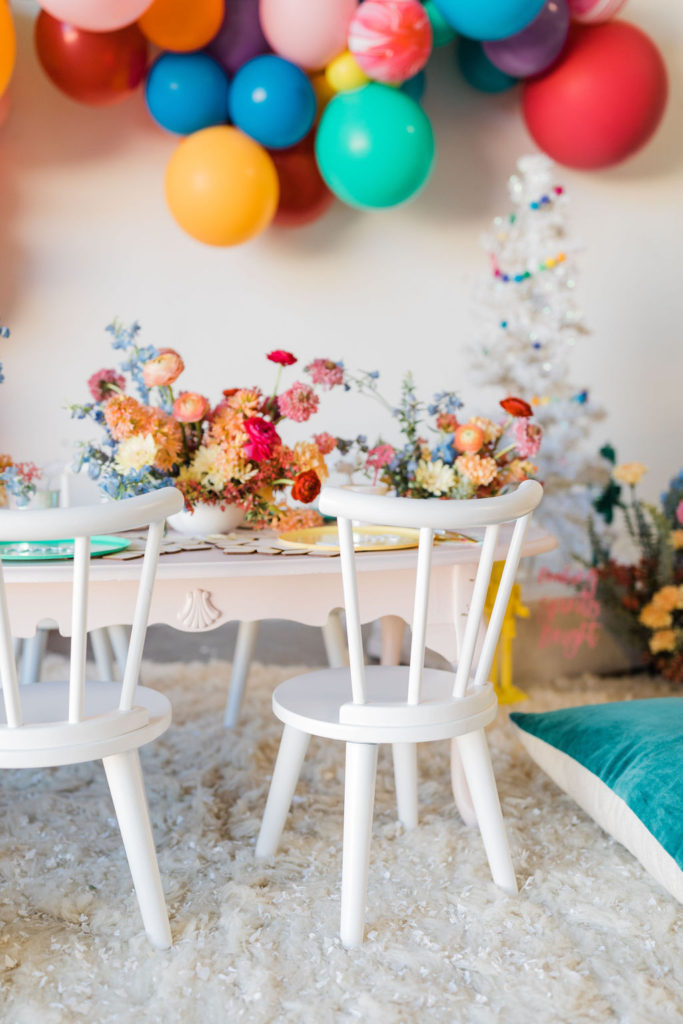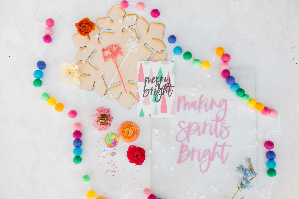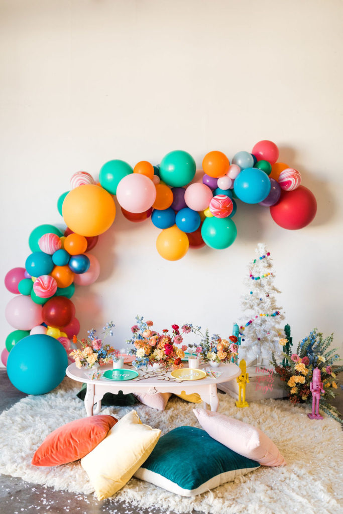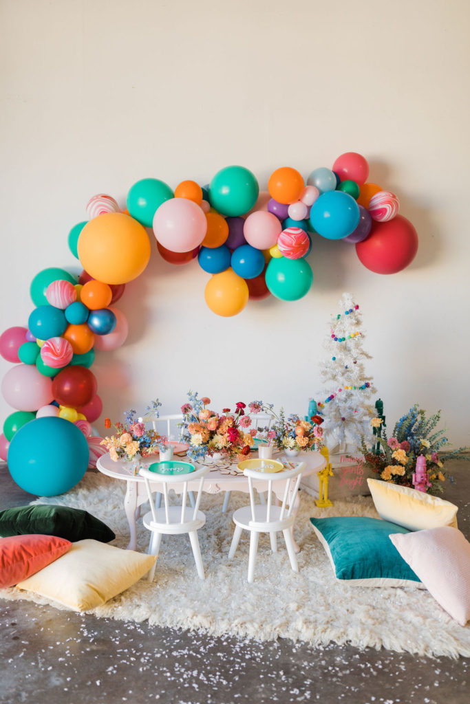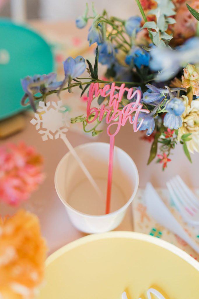 I was inspired by yet another classic Christmas saying – Merry & Bright with this fun party. We used all the bright colors we could and boy did it turn out cute!! Fun was had and I think it’s the perfect inspiration for a non-traditional holiday party, keep scrolling to see!!