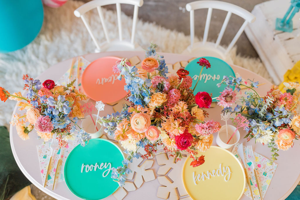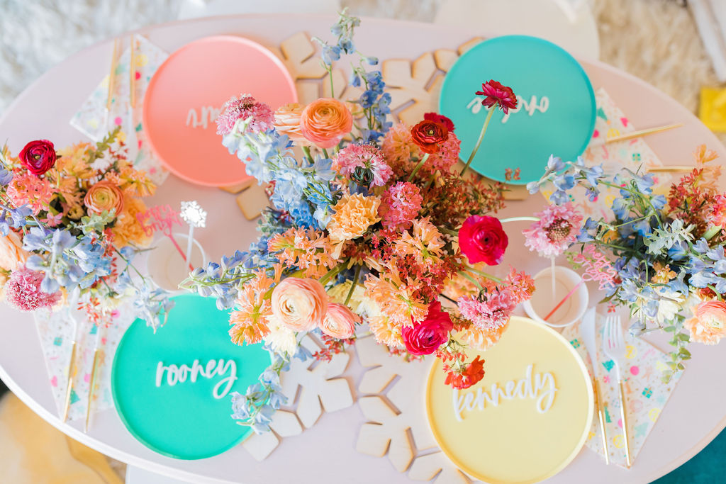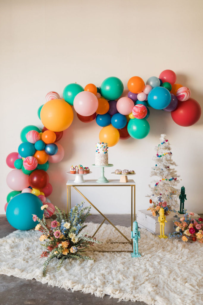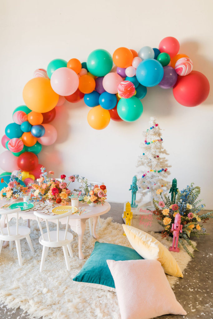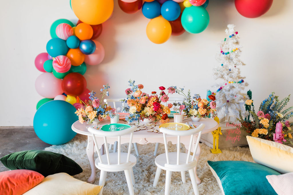I was inspired by yet another classic Christmas saying – Merry & Bright with this fun party. We used all the bright colors we could and boy did it turn out cute!! Fun was had and I think it’s the perfect inspiration for a non-traditional holiday party, keep scrolling to see!!