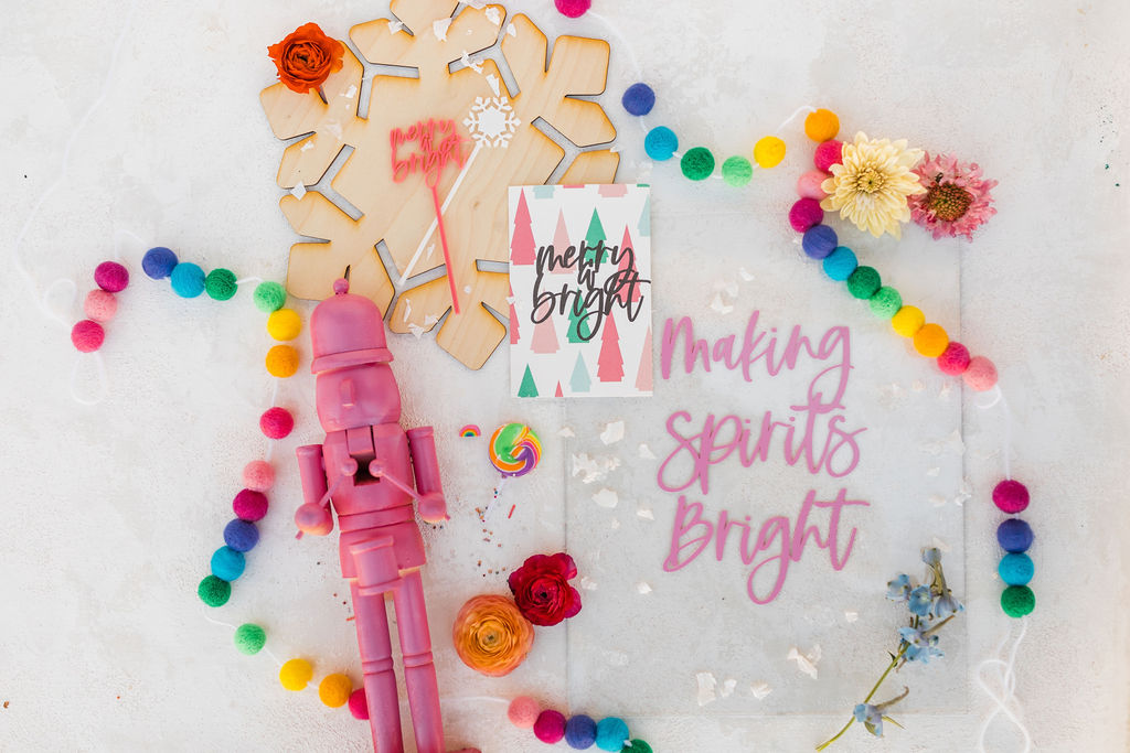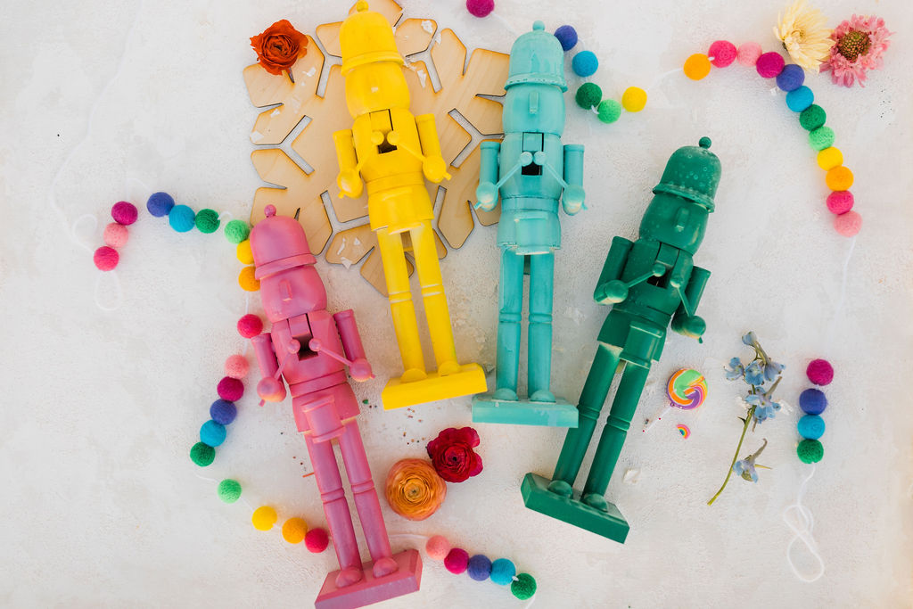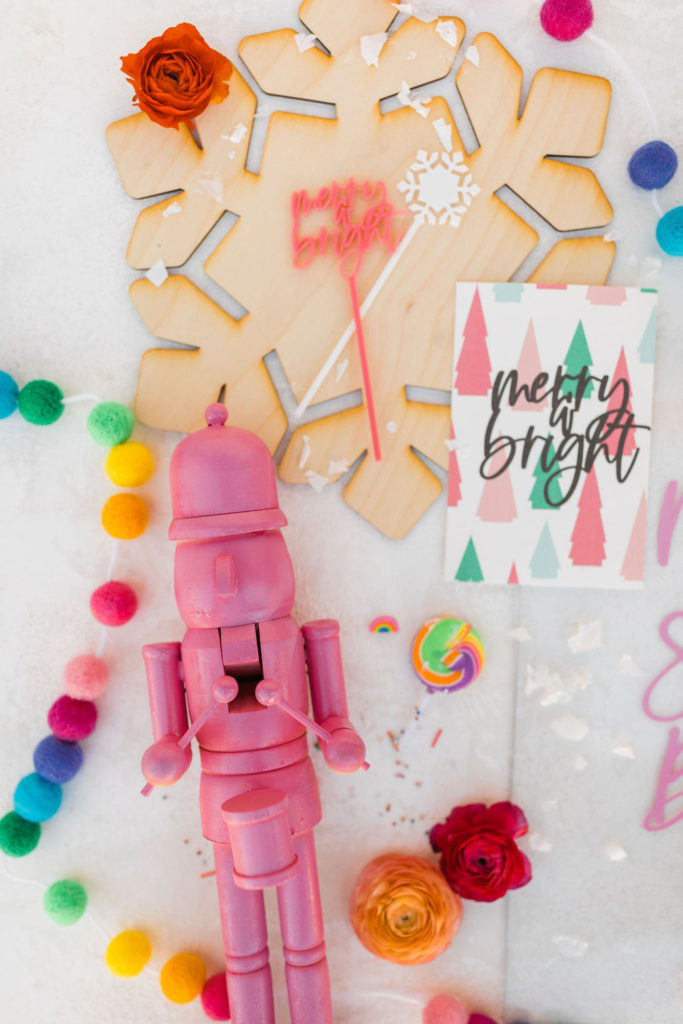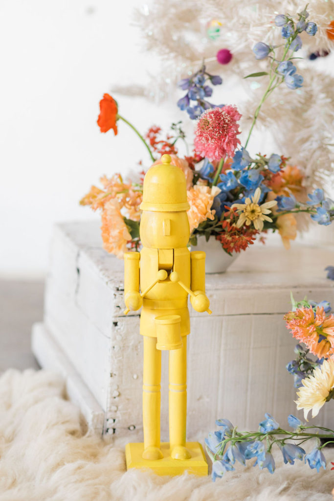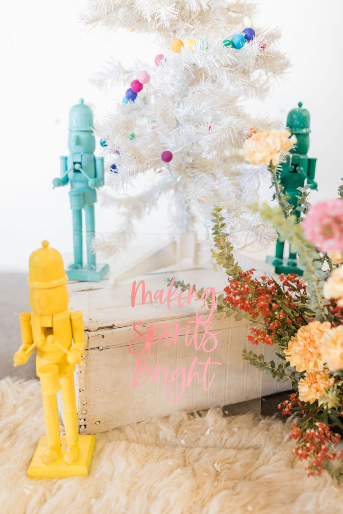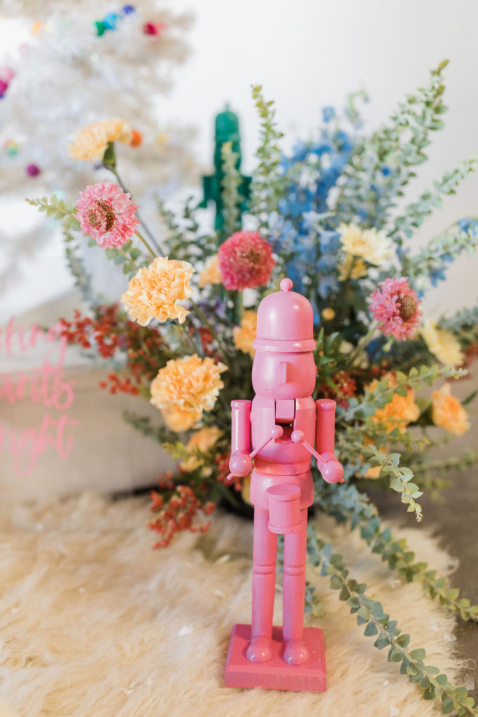 I purchased these nutcrackers you’ll see throughout the shoot from Michaels and gave them a colorful makeover c/o My Color Shot! We’re making spirits (and everything else we can) bright over here!!